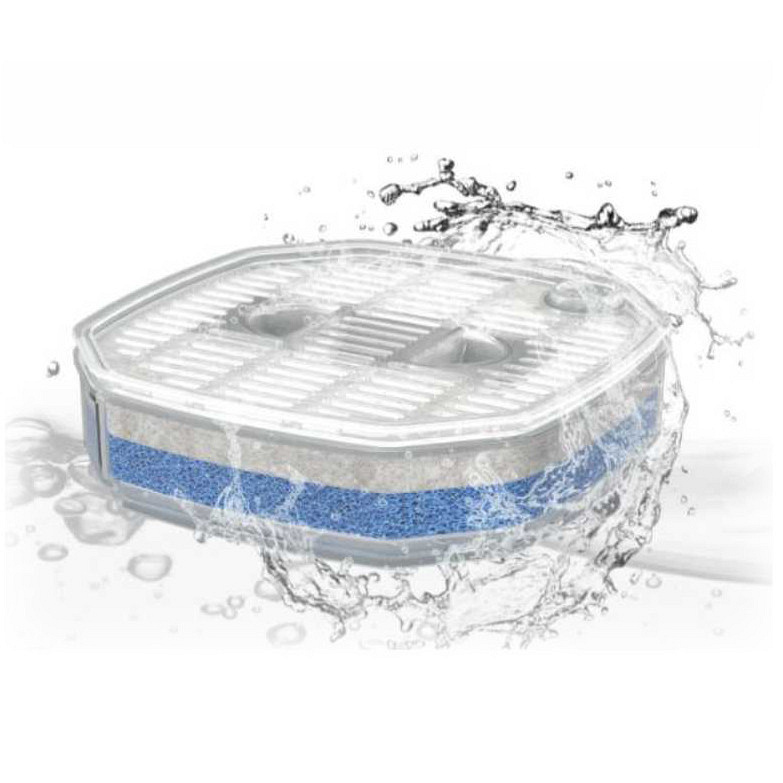 Filter met een dubbele laag. Het wattenpatroon is effectief als voorfilter, het grove patroon zuivert het water.