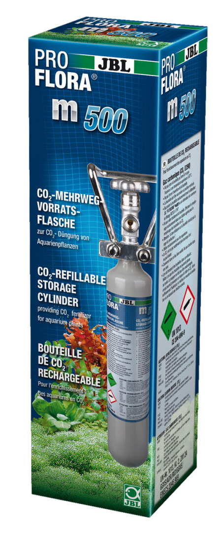 De JBL ProFlora m500 is een hervulbare voorraadfles gevuld met kooldioxide. De fles is klaar voor gebruik. TV-gekeurd en bevat een veiligheidsventiel tegen overdruk. Voor een stabiele plaatsing is geen standvoet nodig.