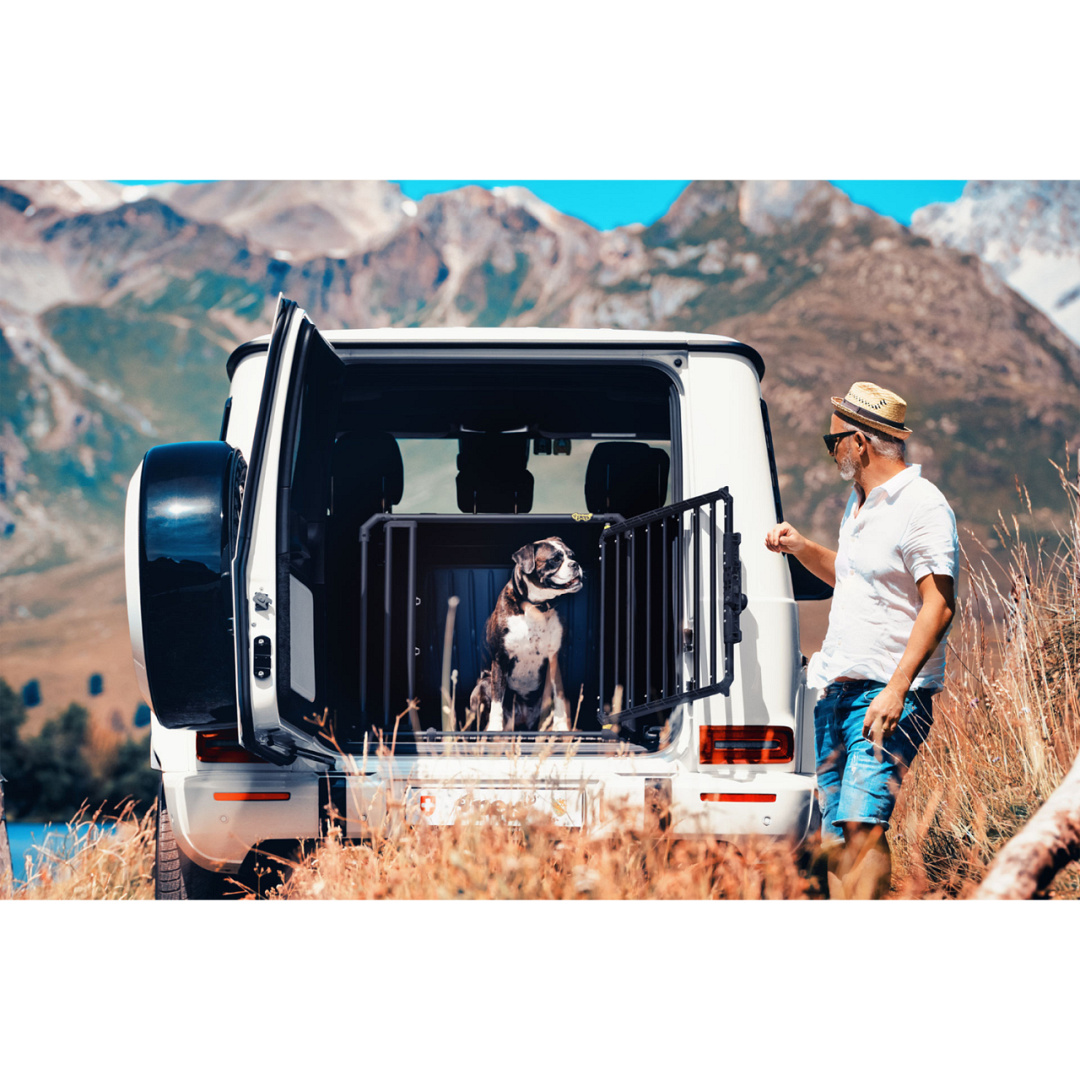 4Pets Pro Autobox Pro 4 is een auto vervoersbox van hoge kwaliteit, in eigentijdse matzwarte uitvoering. De autobox is gemaakt in Zwitserland en TUV gekeurd, dus crash test proof.