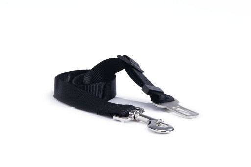 De lijn is voorzien van een musketonhaak om vast te klikken aan de halsband of veiligheidsharnas en aan de andere zijde het deel om vast te klikken in de autogordel.