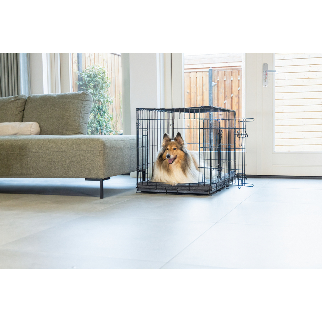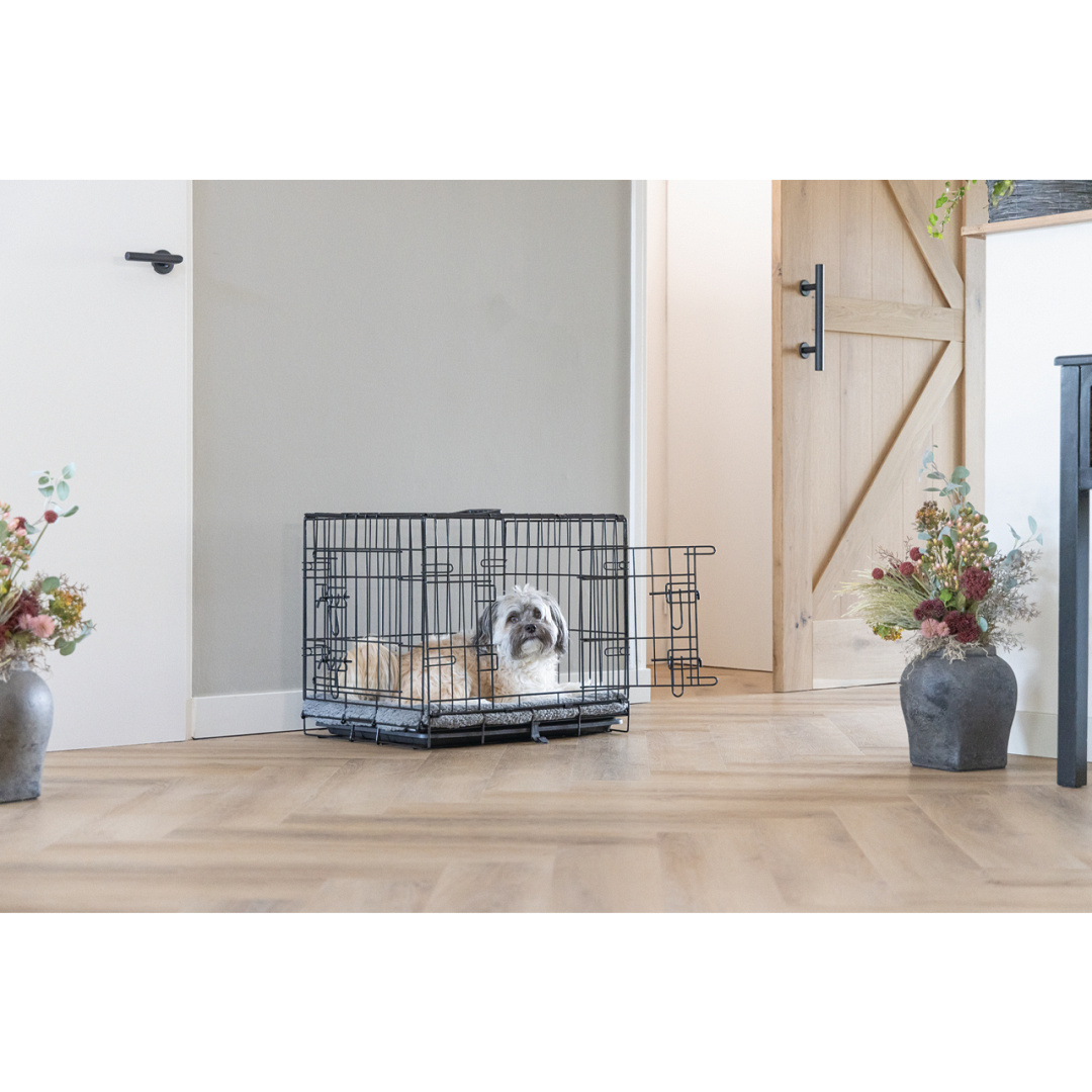 Met de Beeztees Hondenbench geef je jouw pup of hond een eigen plek, waarbij je zeker weet dat er niks kapot gaat in huis. Deze bench met 2 deuren, is inklapbaar en daardoor ook gemakkelijk op te bergen. Doordat de bench 2 deuren heeft, kun je de bench vrijwel overal in huis neerzetten. De bench is daarnaast voorzien van een plastic benchlade. Door middel van het handvat aan de bovenkant, kun je de ingeklapte bench gemakkelijk verplaatsen en opbergen. Met de Beeztees hondenbench geef je jouw hond een veilige plek in huis. Leg er een benchkussen in voor extra comfort. De bodem van de bench is gemakkelijk schoon te maken, mocht er een ongelukje gebeuren!