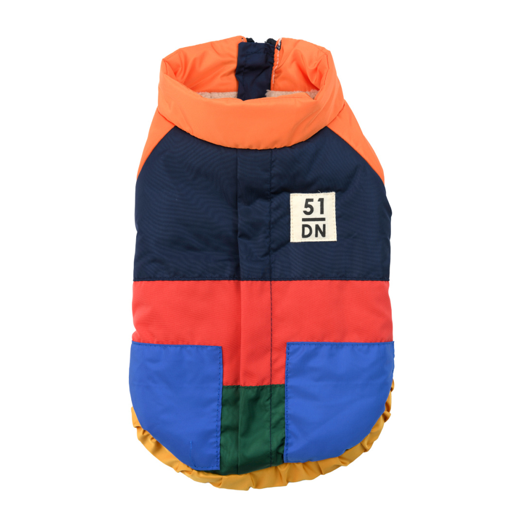 Met de stijlvolle en kleurrijke hondenjas Color Blocking van 51 Degrees North ziet je huisdier er deze winter gegarandeerd fantastisch uit. Bovendien is deze jas ideaal om je huisdier lekker warm en droog te houden. Deze comfortabele jas heeft namelijk een erg zachte en warme binnenvoering én een waterbestendige buitenkant. Daarnaast is de jas onderaan voorzien van een ritssluiting, zodat je hem makkelijk aan en uit kan doen.