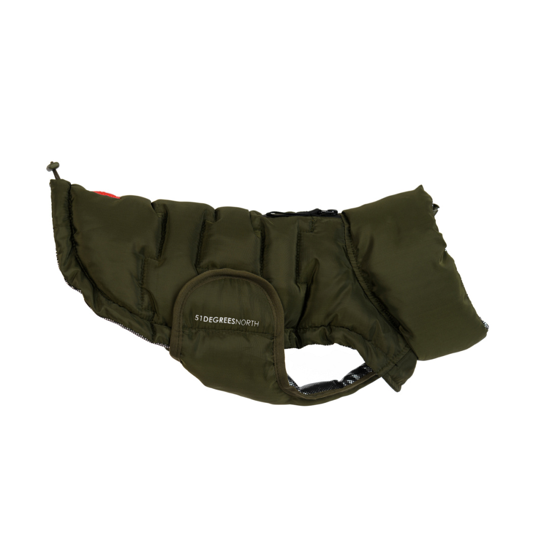 Deze Edge Coat hondenjas van 51 Degrees North ideaal voor jouw huisdier als je op zoek bent naar een winterjas met een leuk en origineel motief! Met deze comfortabele en warme jas, met thermische binnenvoering en waterbestendige buitenkant, geniet jouw huisdier van ontspannende wandelingen op koude dagen of van urenlang speelplezier in de regen of sneeuw. Tegelijkertijd ziet hij of zij er ook nog eens superleuk uit. Een echte win-win situatie dus! Daarnaast heeft deze stijlvolle winterjas een afneembare capuchon met drukknopen en een handige velcrosluiting aan de zijkant, om de jas makkelijk aan en uit te kunnen doen.