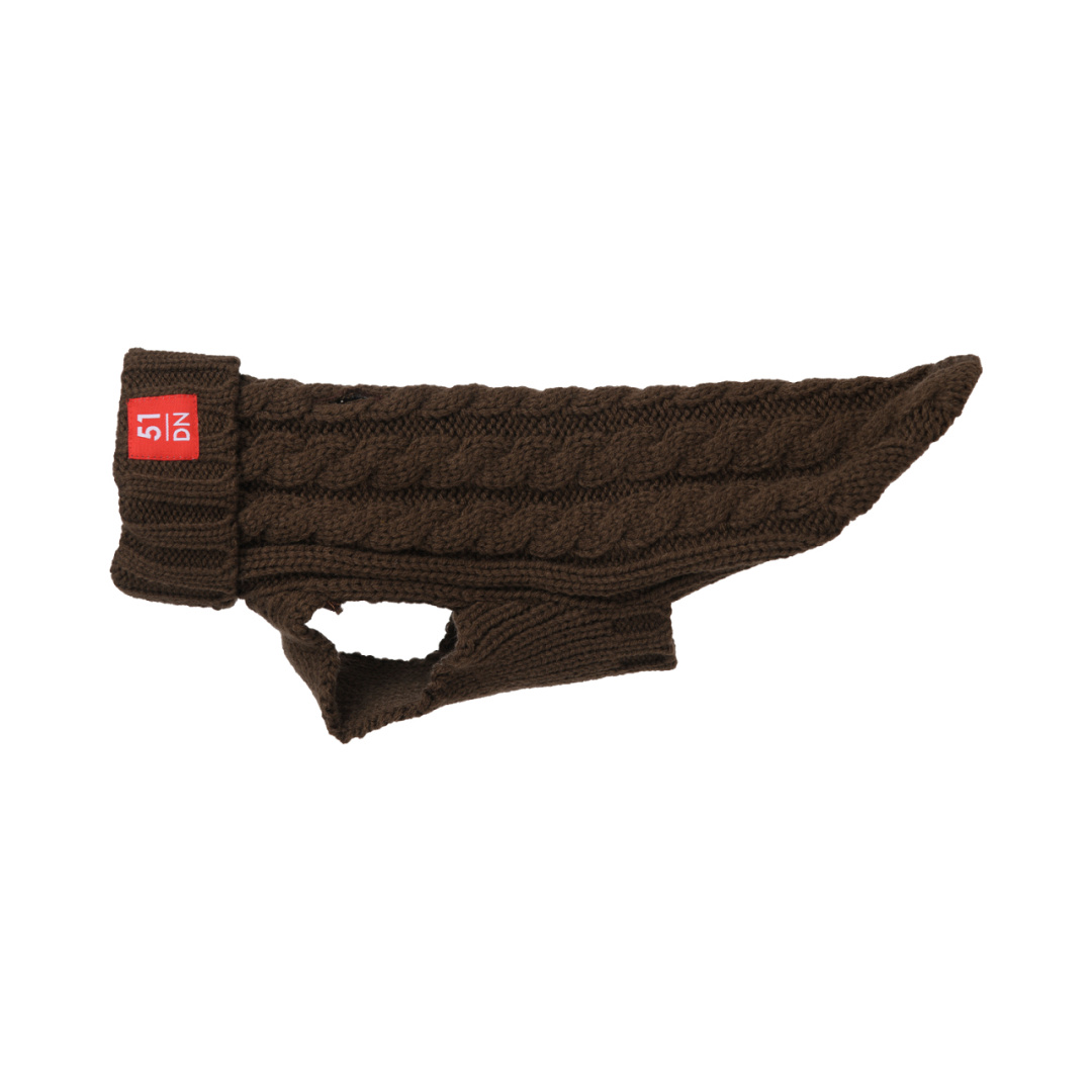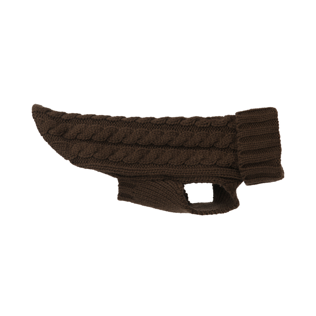 Tijdloze, gebreide hondentrui met kabelpatroon en hoge col.