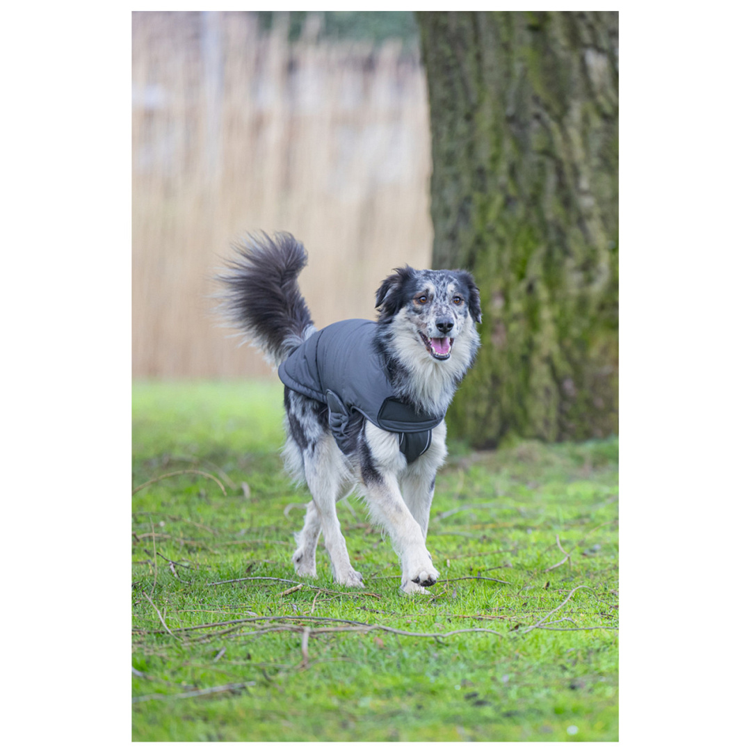 Lekker warme, waterbestendige hondenjas met fluwelen binnenkant. Met handige klittenband sluiting en elastische beenbanden die het jasje goed op zijn plek houden.