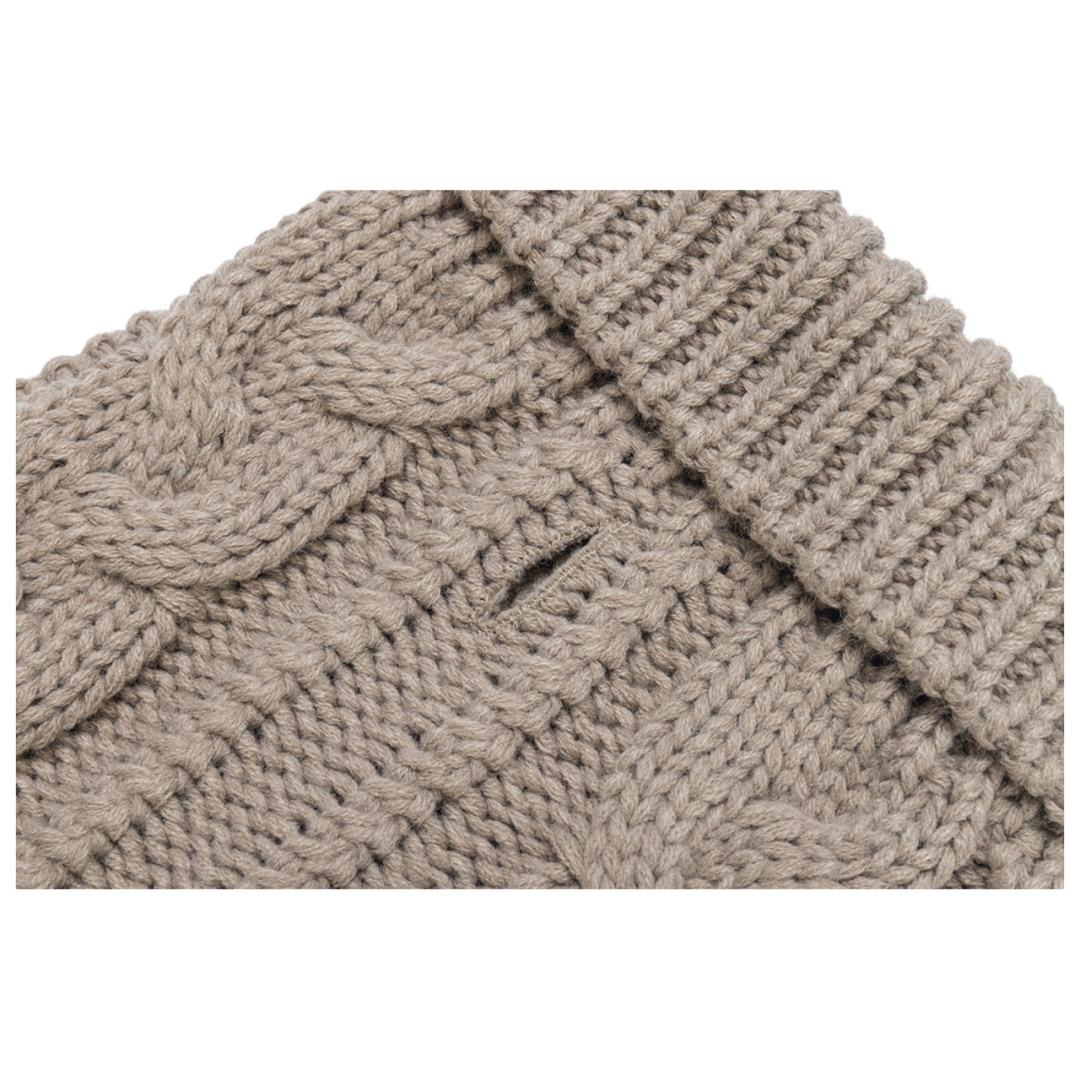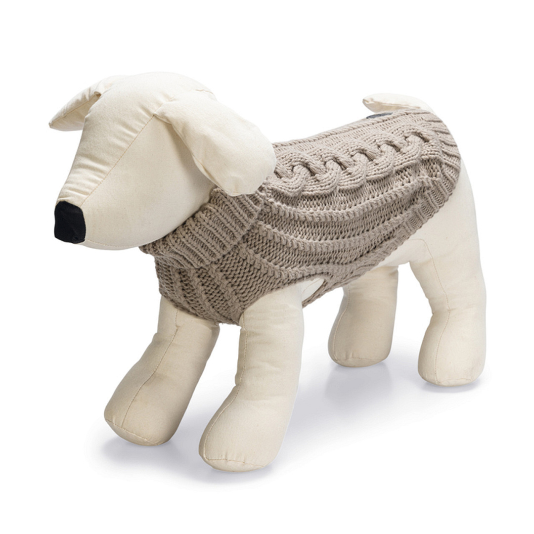 Heerlijk warme hondentrui met hoge, oprolbare kraag en een afgewerkt gaatje waardoor je de riem kan bevestigen.