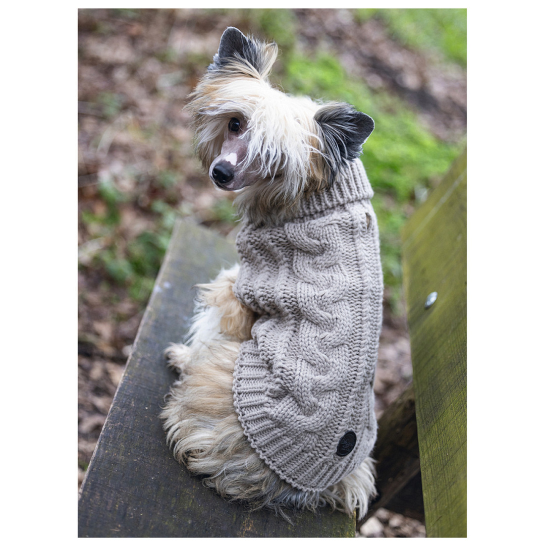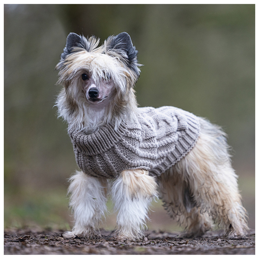 De Designed by Lotte hondentrui Haida is een ideale extra warmtebron voor jouw hond. Heeft jouw trouwe vriend geen dikke vacht van zichzelf en het snel koud? Of dient een wond te worden beschermd na een operatie? Dan is deze trui een ware uitkomst. Deze hondentrui van Designed by Lotte is naast functioneel ook nog eens een waar mode-item. De trui heeft een mooi gebreid patroon en een hoog opstaande kraag die je kan oprollen naar het ideale comfort voor jouw vriendje. Aan de rugzijde van deze trui zit een afgewerkt gaatje, zo kan je gemakkelijk een looplijn bevestigen aan de halsband of het tuigje. Zo kan jouw hond ook heerlijk warm met je mee wandelen in de koude wintermaanden!