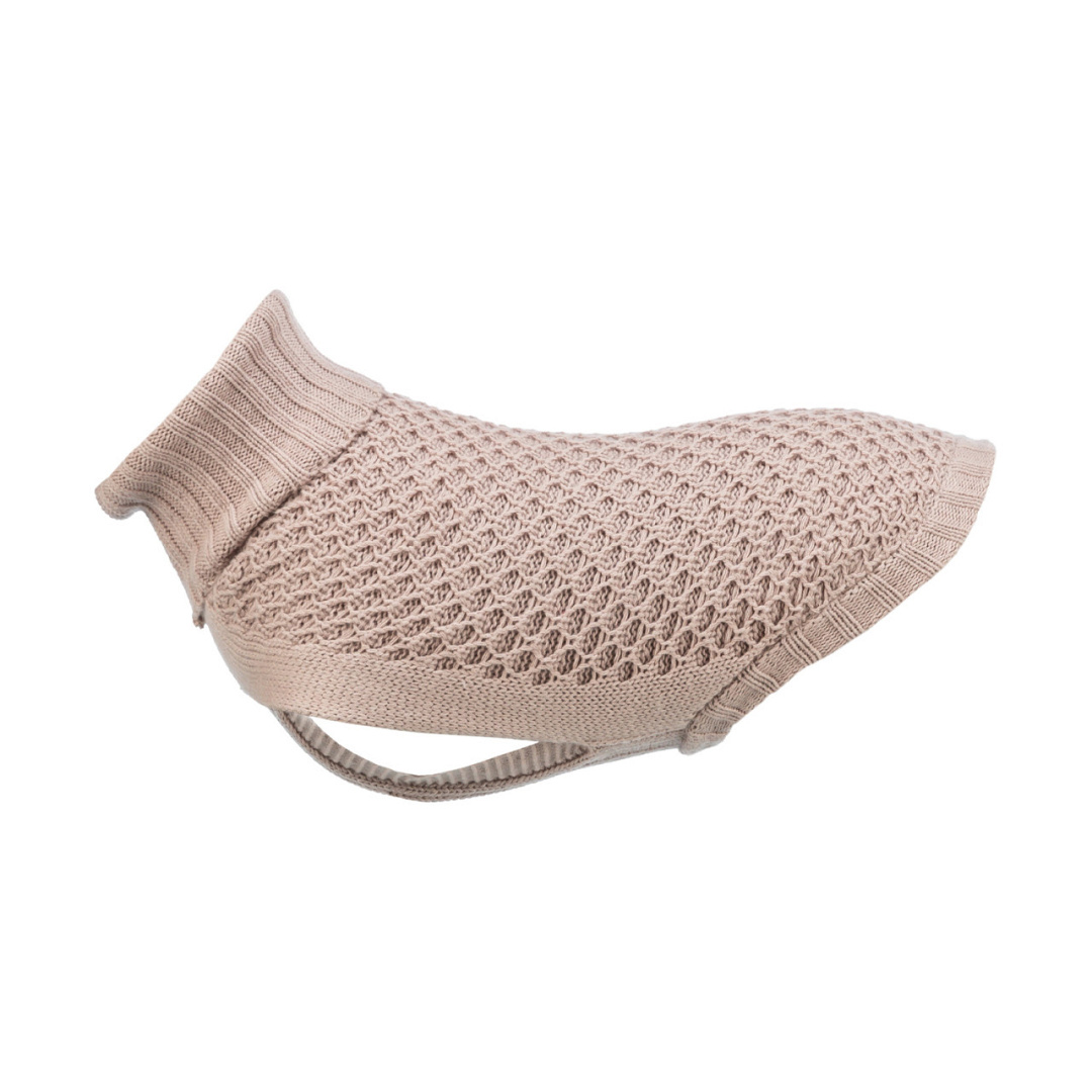 Heerlijk warme hondentrui, gebreid met een mix van katoen, wol en polyamide.