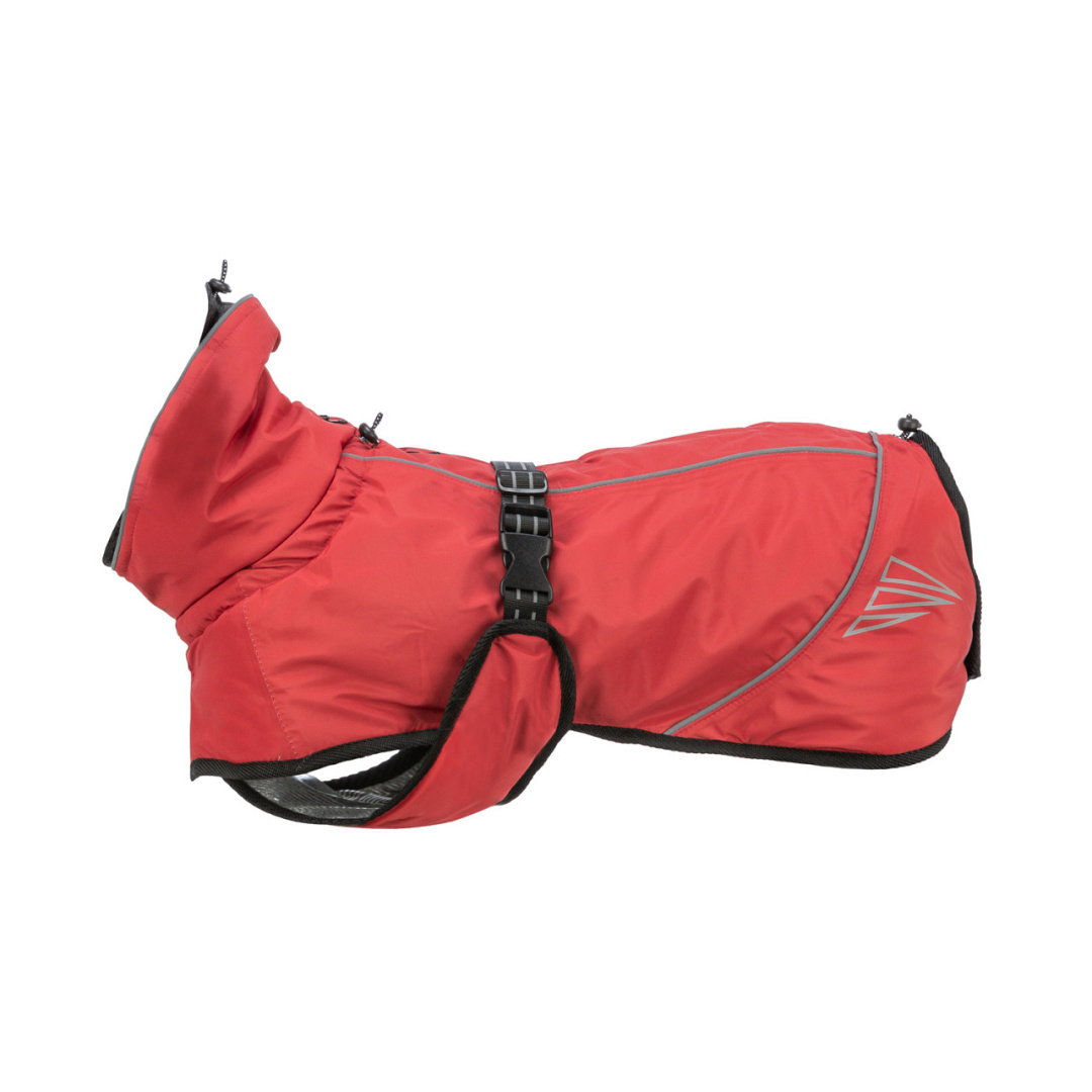 De water- en winddichte Trixie hondenjas Explore Thermo reflecteerd aan de binnenkant de lichaamswarmte. De ruime pasvorm zorgt voor meer schouder- en bewegingsvrijheid. En door de reflecterende elementen is de hond ook zichtbaar in het donker.