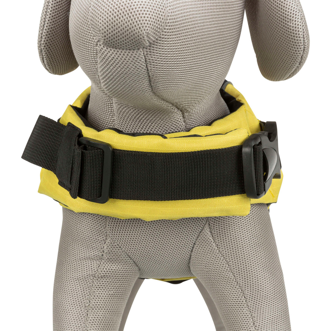 De hond gebruikt zijn staart in het water als stuur en dus is het niet de bedoeling dat het zwemvest over de staartaanzet valt. "