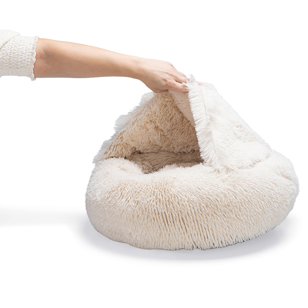 Heerlijke pluchen mand met geïntegreerde slaapzak voor als jouw hond het koud heeft. Kan in zijn geheel in de wasmachine.