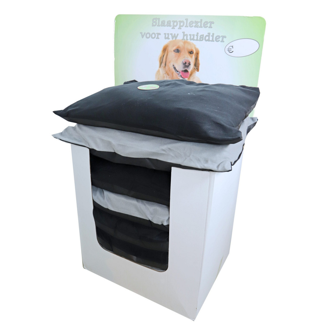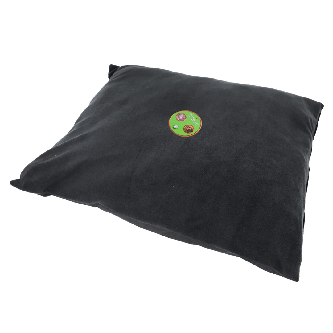 Dit hondenkussen zijn 90 x 75 x 16 cm en in de kleuren grijs en zwart te verkrijgen allebei met zwarte onderkant. Het kussen is goed gevuld en geeft jouw huisdier het gevoel dat hij een eigen plekje heeft.