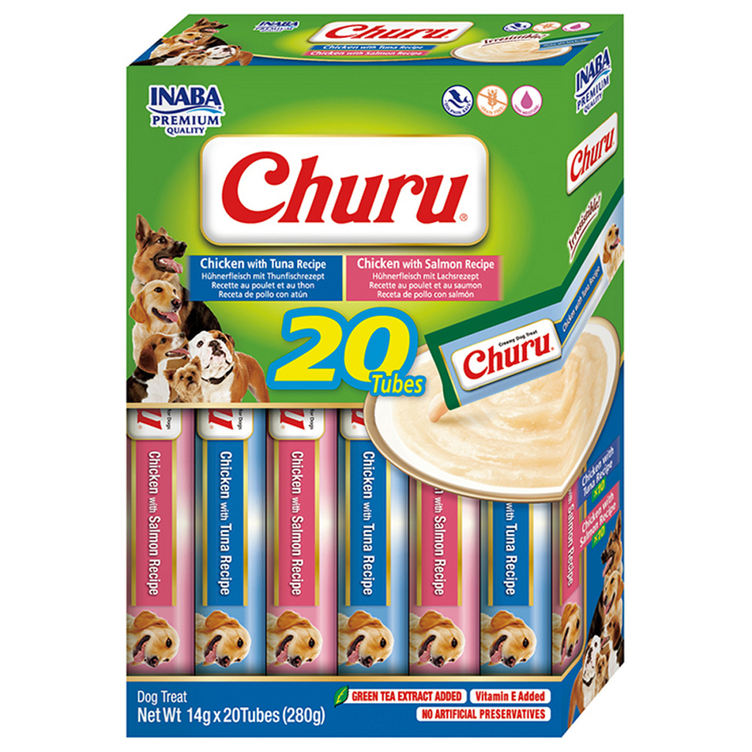 Inaba Churu likbare hondensnack is gemaakt met lekkere ingrediënten van hoge kwaliteit, waaronder op de boerderij gekweekte kip en/of natuurlijke wildgevangen tonijn. Deze likbare tubes met puree voor honden zijn ontworpen om met de hand gevoerd te worden als een interactieve manier om tijd door te brengen met je hond, maar je kunt ze ook gebruiken om medicatie te verbergen.