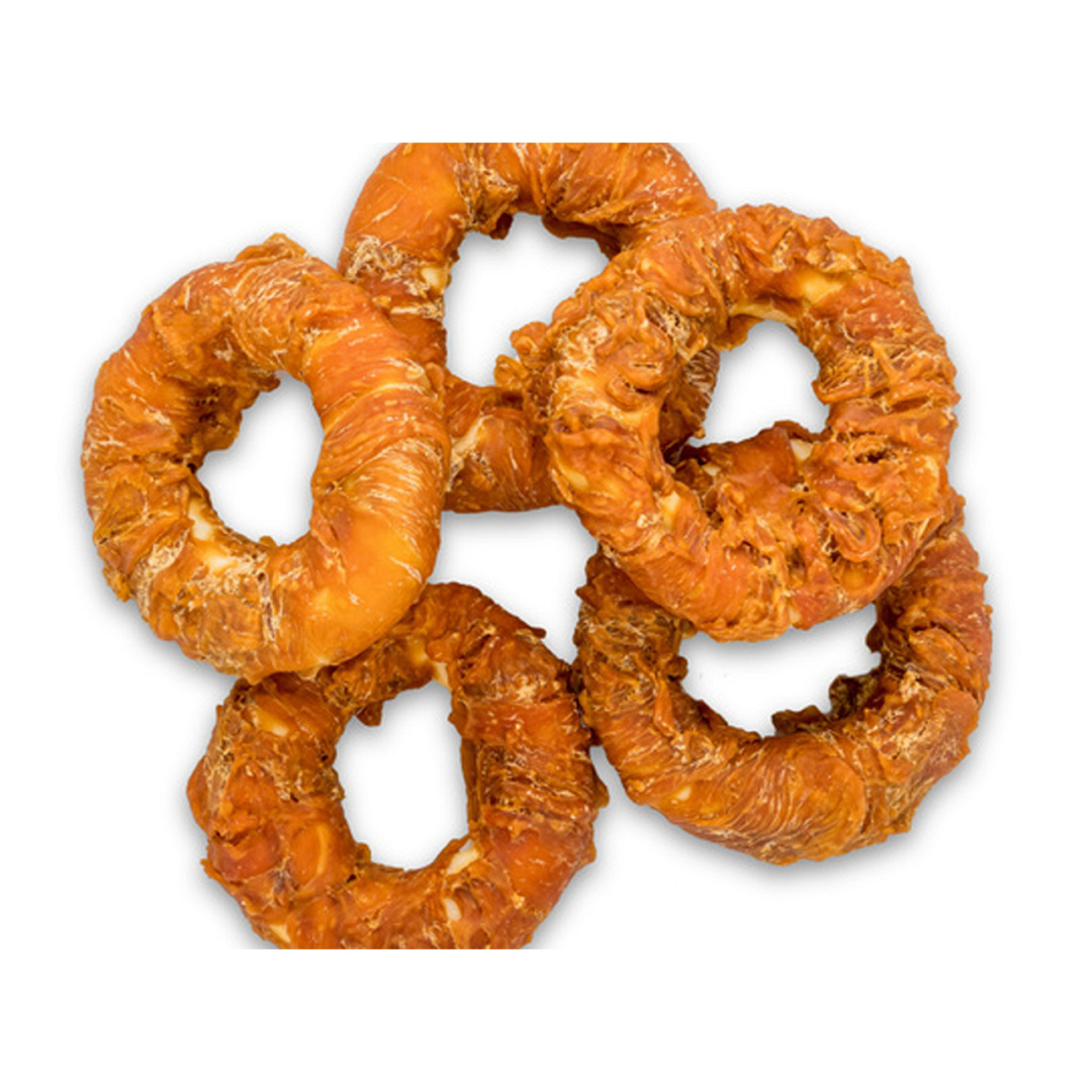 Kauwringen van wit runderhuid omwikkeld met kipfilet.