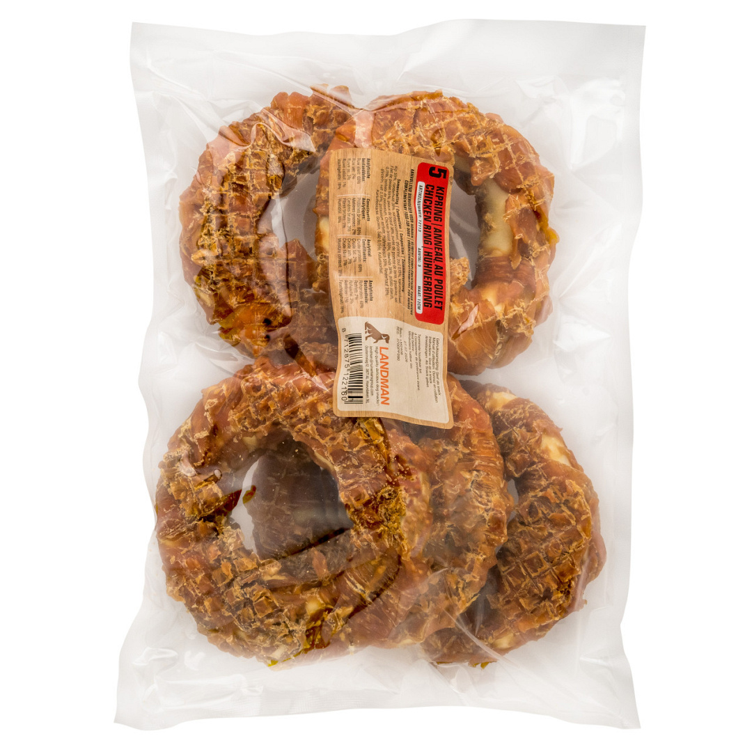Landman kauwringen van wit runderhuid omwikkeld met kipfilet.