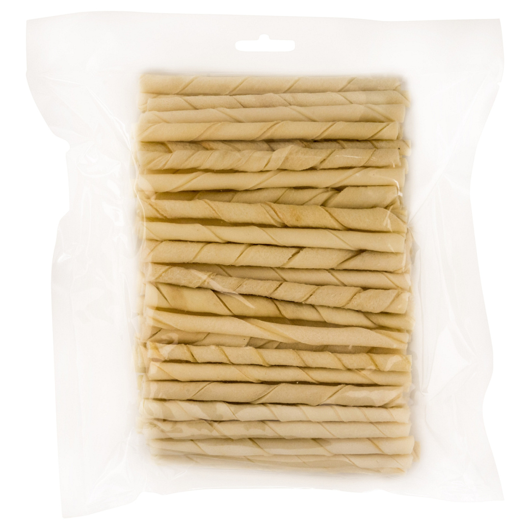 Landman Witte Gedraaide Staafjes zijn natuurlijke en glutenvrije hondensnacks van onderhuids bindweefsel van rund, geweekt in waterstofperoxide. Glutenvrij.