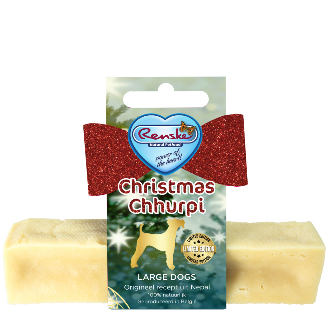 Renske Chhurpi Kerst Kauwkluif is een natuurlijke hondensnack, gebaseerd op een eeuwenoud recept uit de Himalaya, nu in een speciale kersteditie. Handgemaakt op basis van een traditionele methode, is deze kauwsnack een echte verwennerij! Een gezonde snack, laag in calorieën met een onweerstaanbare smaak, geschikt voor honden vanaf 4 maanden. Ideaal als cadeautje onder de kerstboom!