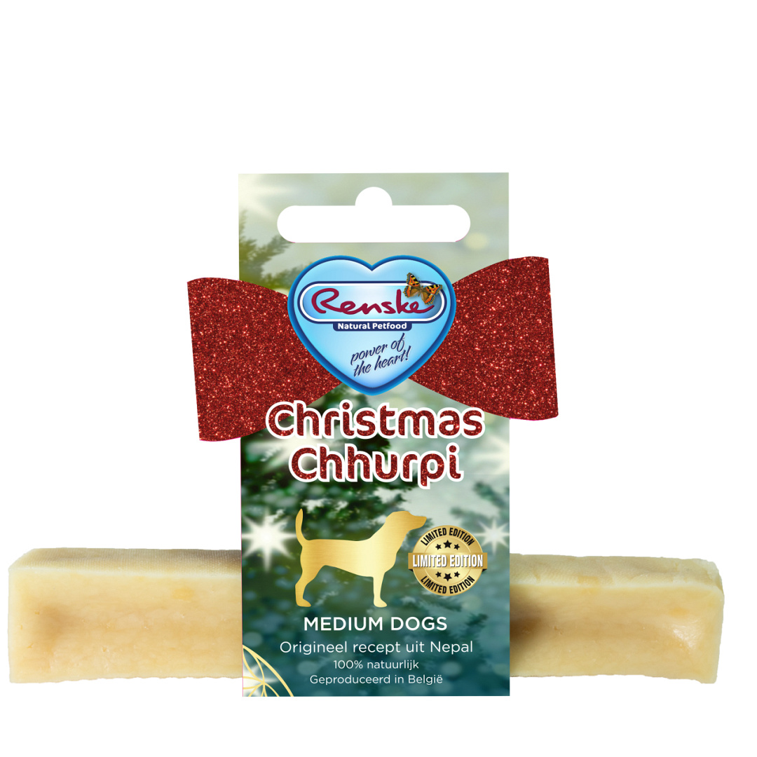 Renske Chhurpi Kerst Kauwkluif is een natuurlijke hondensnack, gebaseerd op een eeuwenoud recept uit de Himalaya, nu in een speciale kersteditie. Handgemaakt op basis van een traditionele methode, is deze kauwsnack een echte verwennerij! Een gezonde snack, laag in calorieën met een onweerstaanbare smaak, geschikt voor honden vanaf 4 maanden. Ideaal als cadeautje onder de kerstboom!
