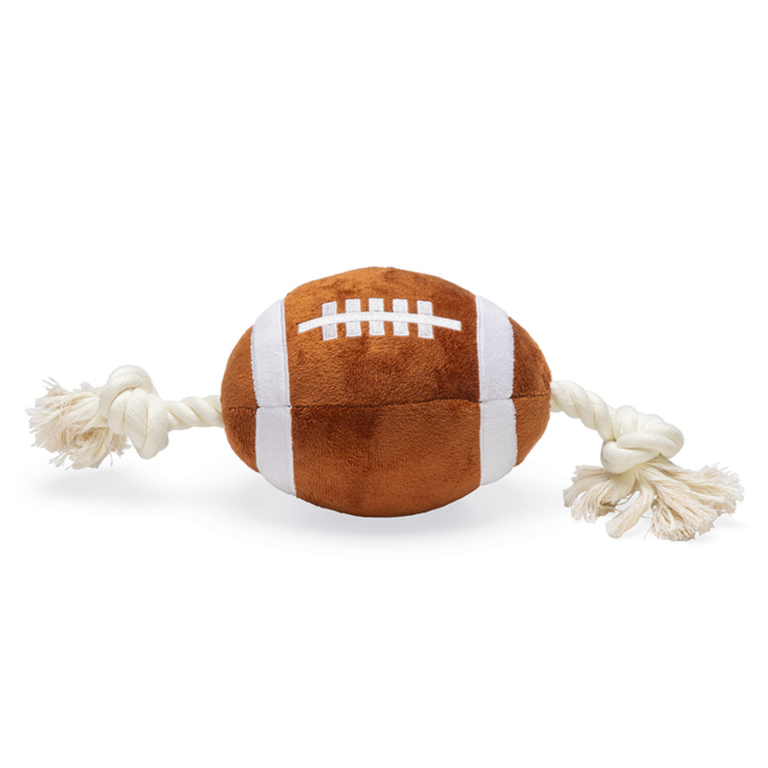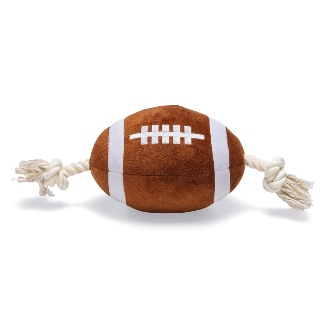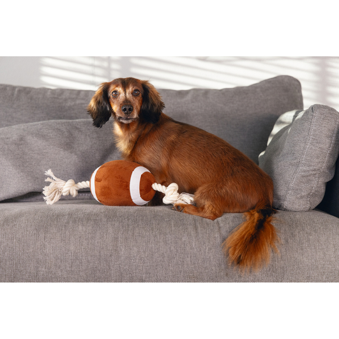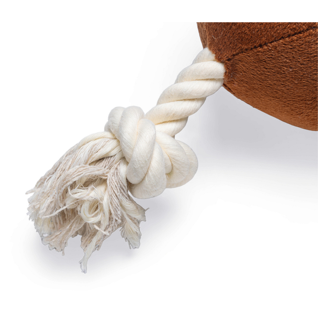 Pluchen rugbybal met flostouw, voor de leukste apporteer- en trekspelletjes.