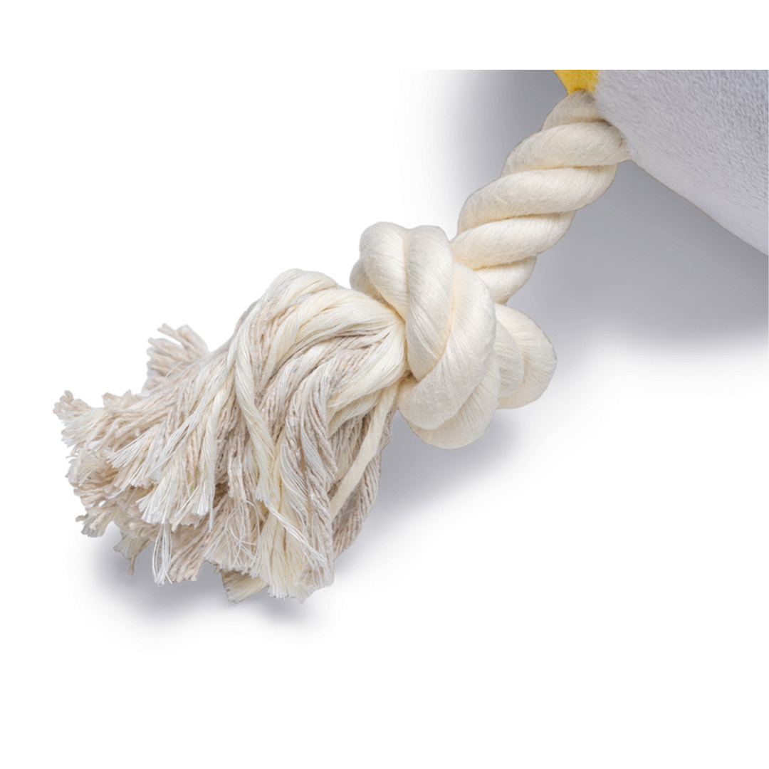 Pluchen volleybal met flostouw, voor de leukste apporteer- en trekspelletjes.