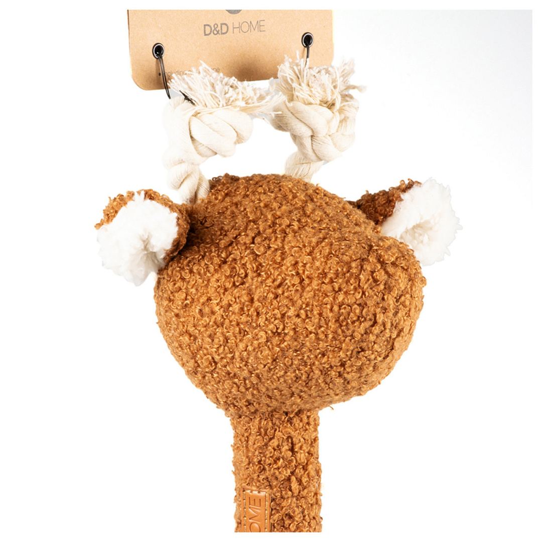 Hondenspeeltje George van D&D Home is voor iedere hond een must have. Dit stevige speeltje in de vorm van een giraf, is uitgevoerd in een leuke teddy stof en opgevuld met polyester. George heeft een staart van natuurlijk katoentouw en ook in zijn nek zit een dik touw verwerkt voor extra speelplezier.