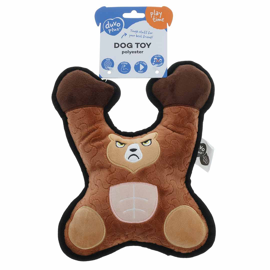 Dit leuke hondenspeeltje Boze beer van Duvoplus is een schattige knuffel voor jouw hond. Het heeft een geborduurd gezichtje, een stevige vulling, en is gemaakt van zachte pluche met een dikke zwarte rand, wat zorgt voor extra stevigheid.