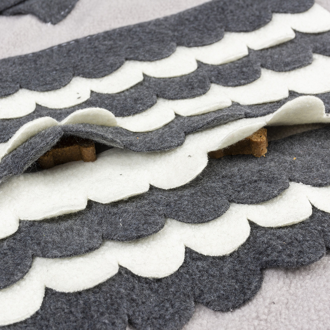 Verstop de favoriete snacks van jouw kat of hond in de Duvo+ snackmat DeLuxe. Door de snacks te verstoppen in de mat en de verschillende aanwezige elementen komt het voedsel in allerlei kleine hoekjes terecht. Dit zorgt ervoor dat het jachtinstinct van je kat of hond gestimuleerd wordt, aangezien het een uitdaging is voor je huisdier om de snacks te vinden. De snackmat DeLuxe is een leuke activiteit en daarom de ideale manier om verveling tegen te gaan. De voedselmat helpt gewichtsproblemen te voorkomen en zorgt dat je huisdier minder snel alles opeet. Snuffelen en zoeken stimuleert het natuurlijke fourageergedrag van jouw geliefde huisdier. Jouw kat of hond zal achteraf een voldaan gevoel hebben van de zoektocht.