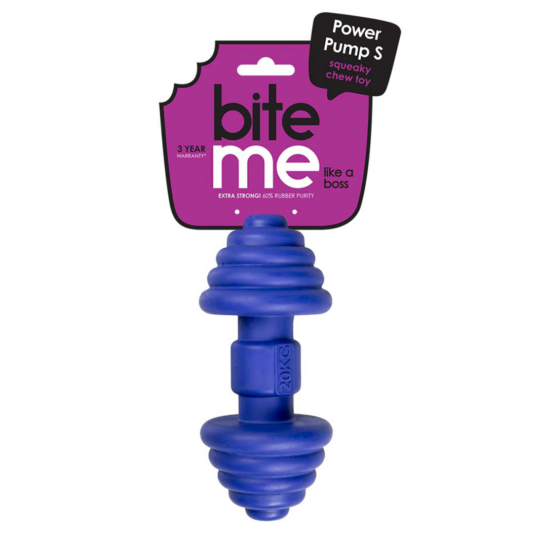 Het EBI kauwspeeltje Bite Me Power Pump is een rubberen hondenspeeltje in de vorm van een dumbbell met een ingebouwde squeaker voor extra speelplezier. Ideaal voor apporteren, interactief spel of gewoon om lekker mee bezig te zijn.