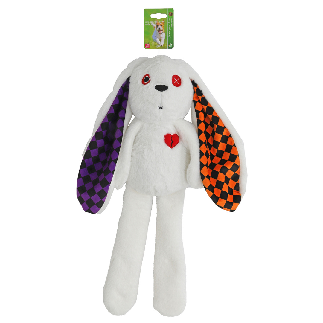 Geef je hond een griezelig leuke Halloween met dit Spooky Halloween Konijn hondenspeeltje! Dit zachte, witte konijn heeft lange oren die perfect zijn voor trekken en spelen, terwijl de ingebouwde pieper zorgt voor extra interactie en plezier. De ritsel-elementen maken het speeltje nog spannender, met extra geluiden die je hond uitdagen en urenlang vermaak bieden. Het konijn is gemaakt van hoogwaardig pluche, ideaal voor knuffelen en actief spelen. Of je nu binnen speelt of buiten op avontuur gaat, dit speeltje is de perfecte manier om je hond in de halloweensfeer te krijgen. Perfect voor honden die houden van zachte, interactieve speeltjes.