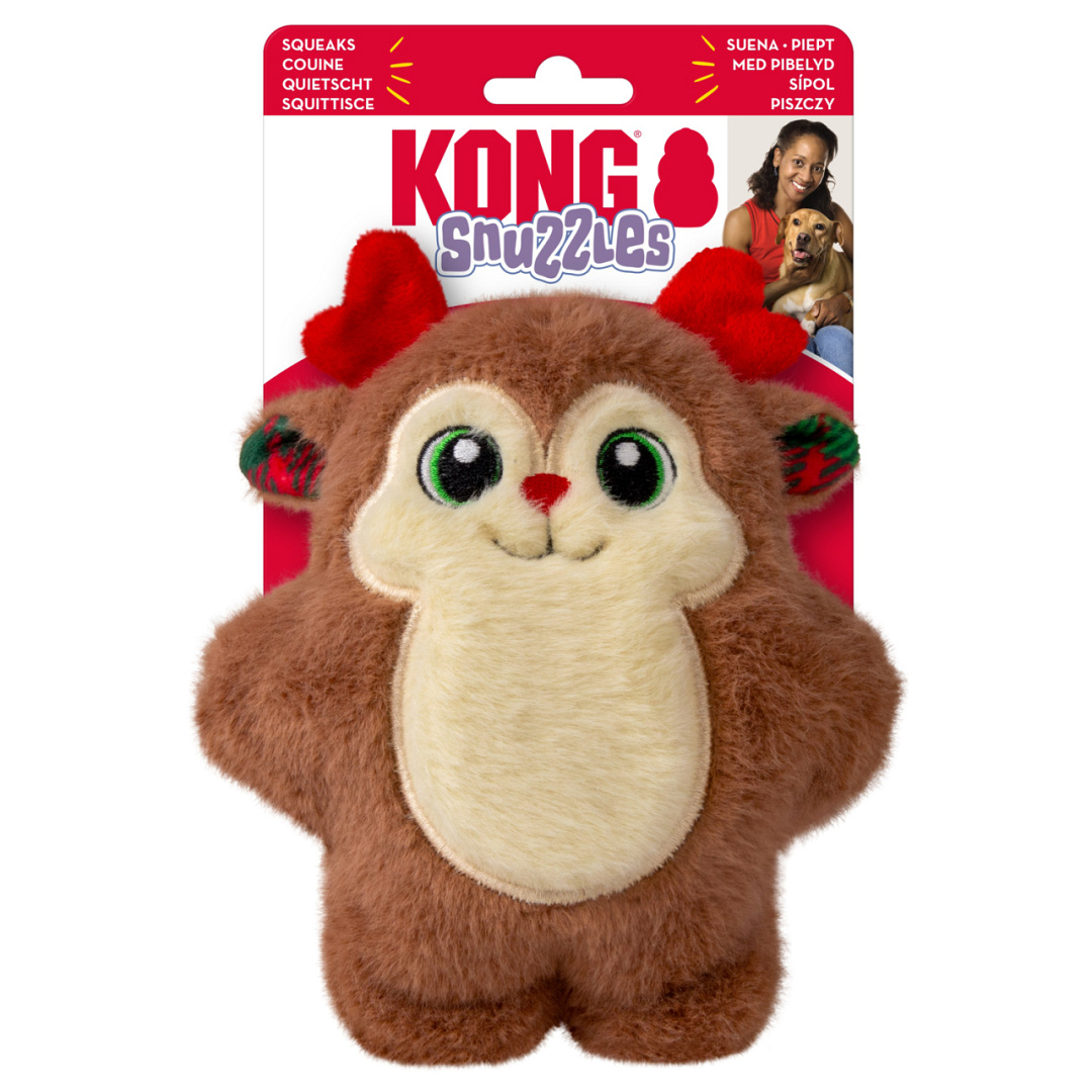 Het Kong hondenspeeltje Holiday Snuzzles Reindeer is de ultieme metgezel voor feestelijk speelplezier. Dit hondenspeeltje heeft een volledige lichaamssqueaker en is gevuld met pluche en ontworpen om in te bijten. De weelderige buitenkant nodigt uit tot eindeloos knuffelen, terwijl de zachte stof ook een fijn gevoel in de bek geeft tijdens het spelen. Laat jouw hond genieten van urenlang speelplezier.