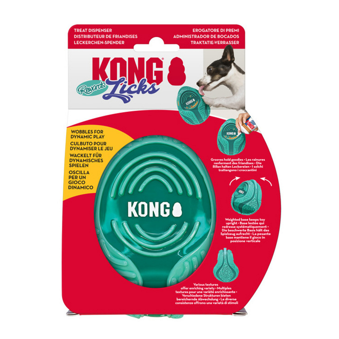 Ontdek de Kong Licks Rewards, het wiebelende beloningsspeeltje voor jouw trouwe viervoeter. Dankzij de groeven in dit speeltje, is het mogelijk een smeerbare lekkernij op dit speeltje te smeren, wat er dan al likkend vanaf kunnen worden gehaald. Omdat dit speeltje vrolijk meewiebelt, wordt dit een uitdagende onderneming! Doordat het gewicht van dit speeltje in de onderkant zit, staat het speeltje altijd rechtop. De verschillende vormen van de groeven, maken dit speeltje nog uitdagender.