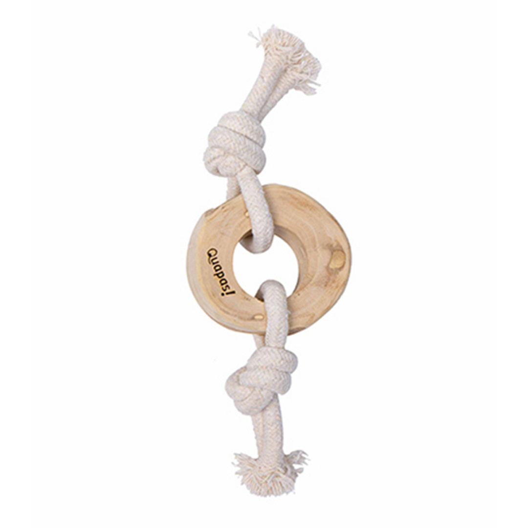 Quapas! Coffeewood Knotted pull ring is een hondenspeeltje van koffiehout & touw.