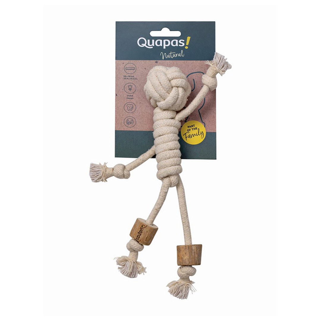 Quapas! Coffeewood Pupa is een hondenspeeltje van koffiehout & touw.