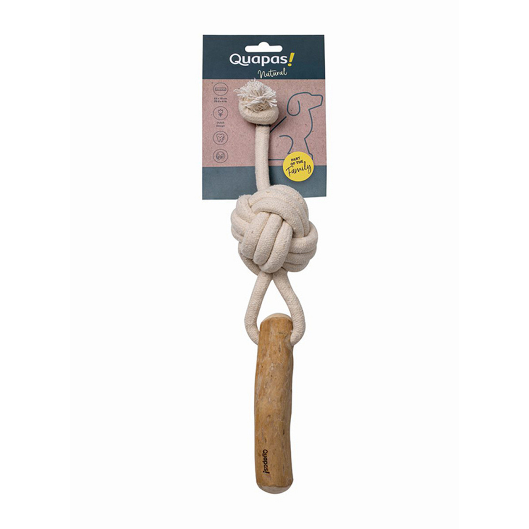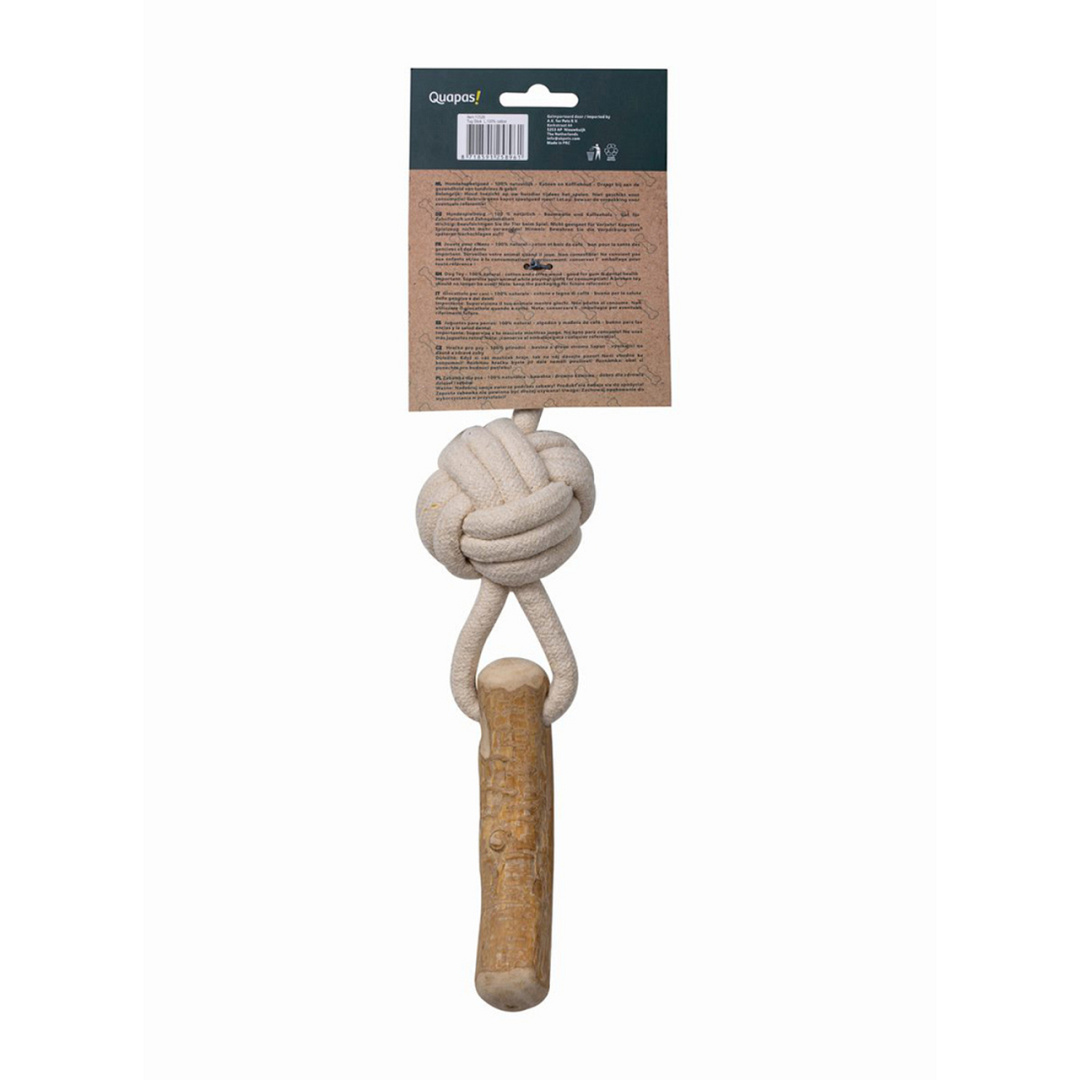 Quapas! Coffeewood Shoot is een hondenspeeltje van koffiehout & touw.
