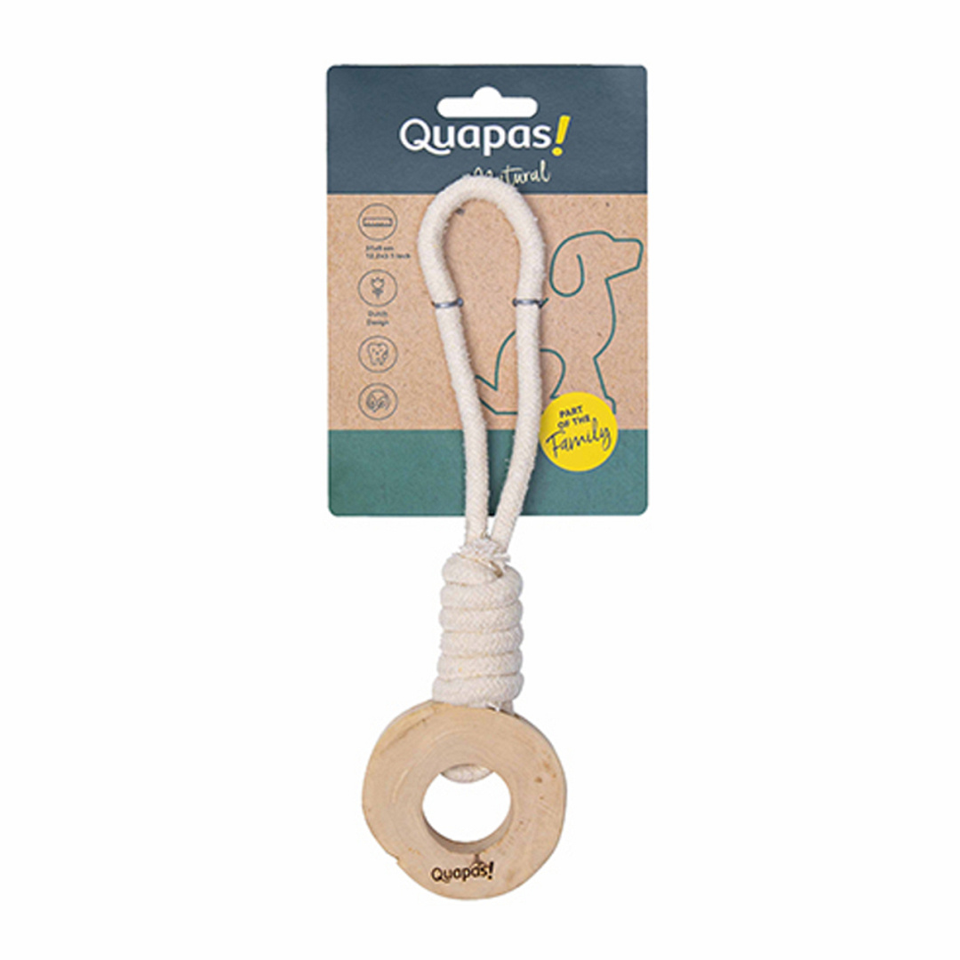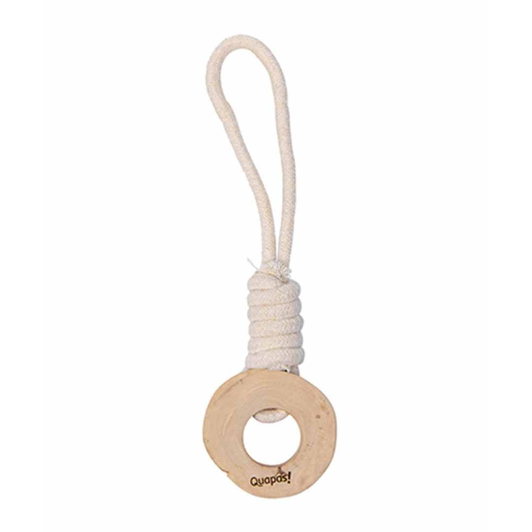 Quapas! Coffeewood Tyre is een hondenspeeltje van koffiehout & touw.