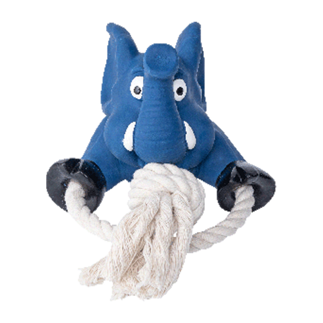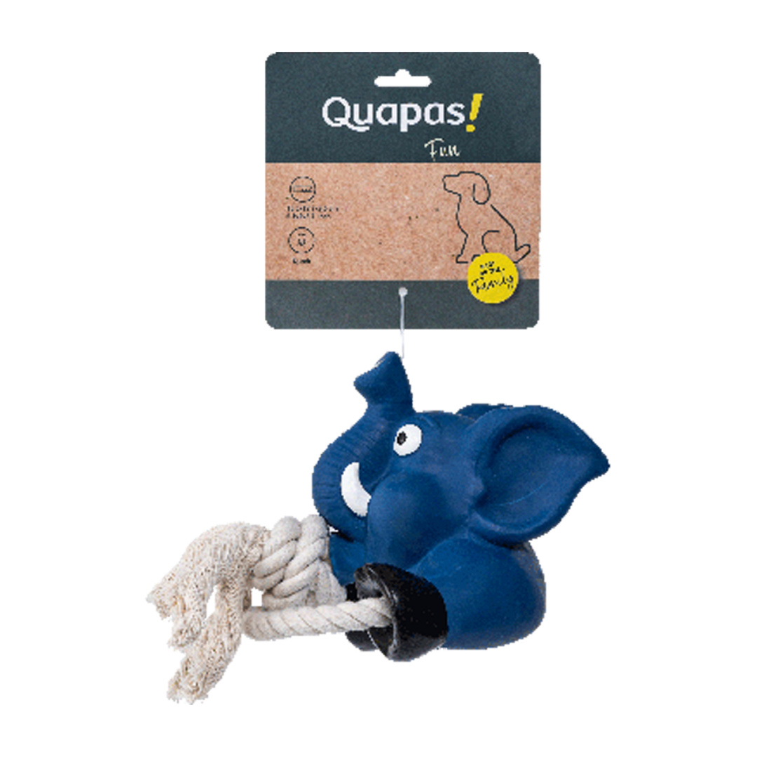 Quapas! Fun Elephant with rope is een hondenspeeltje van latex, met piep.