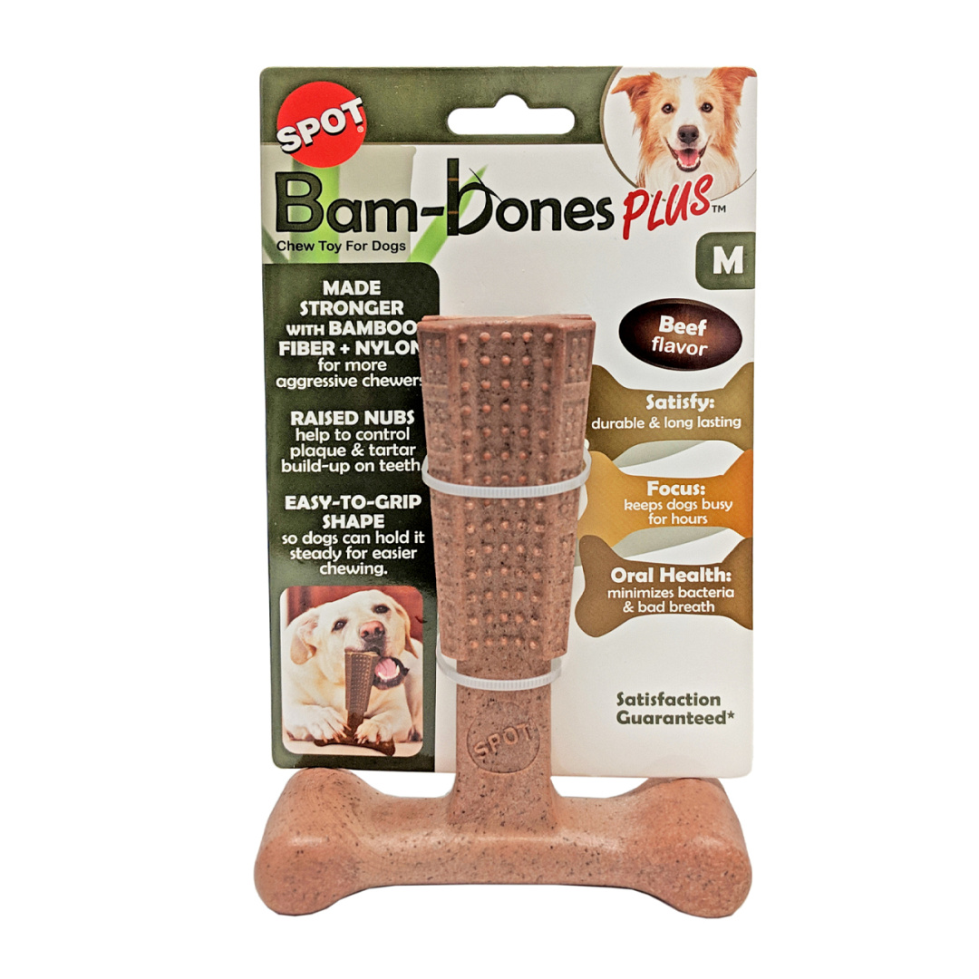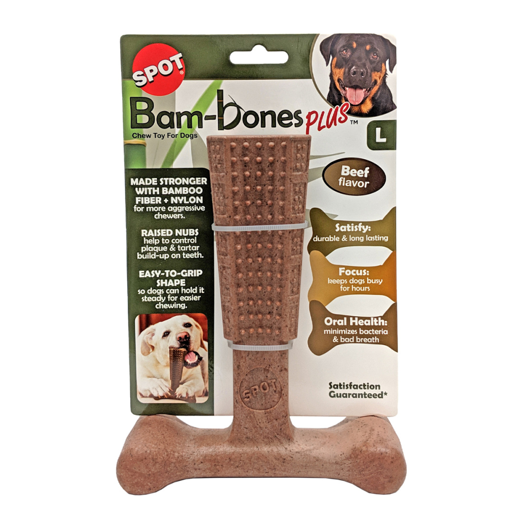 Bam-Bones hebben een houtachtige look, maar dan zonder de nadelen zoals splinteren. De structuur met verhoogde nopjes is prettig voor de hond om op te kauwen. Door het kauwen ontstaan er kleine borstelhaartjes die werken als een tandenborstel. Deze houden het gebit van de hond schoon en voorkomen opbouw van tandsteen.