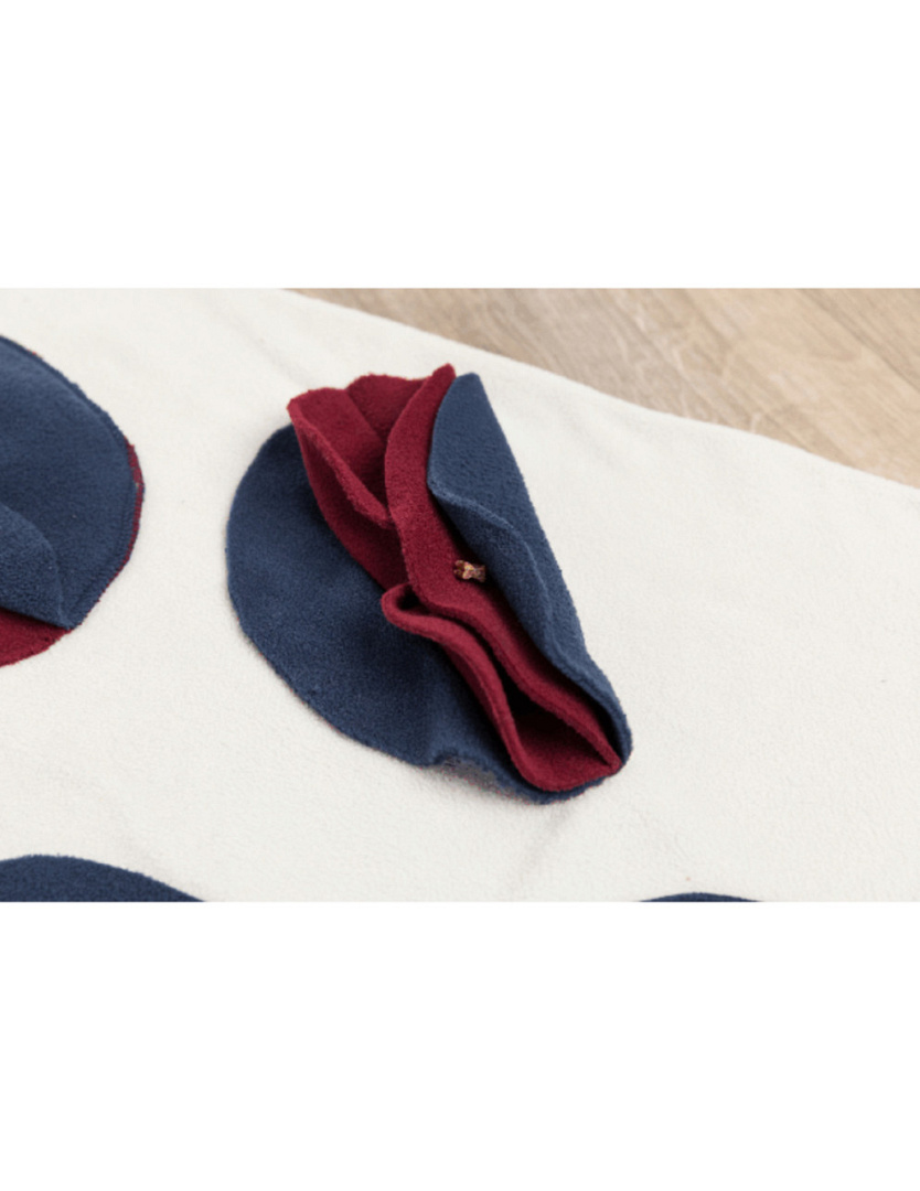 Snuffeldeken die op verschillende niveaus je hond of kat naar beloningen laat zoeken. Houdt je dier bezig en voorkomt schrokken. Afm. 70 x 70 cm.