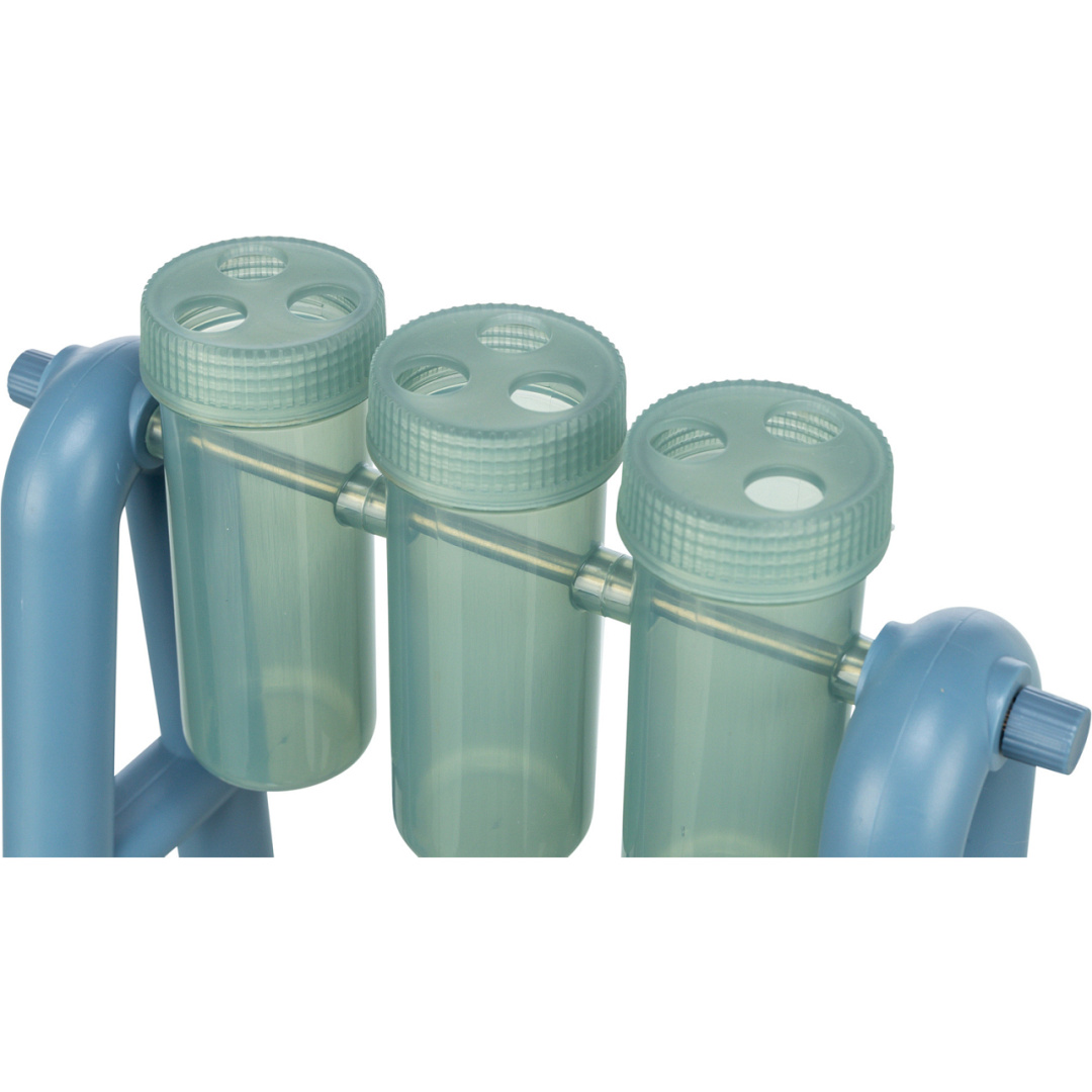 Standaard met 3 draaibare elementen en met elk 2 deksels.