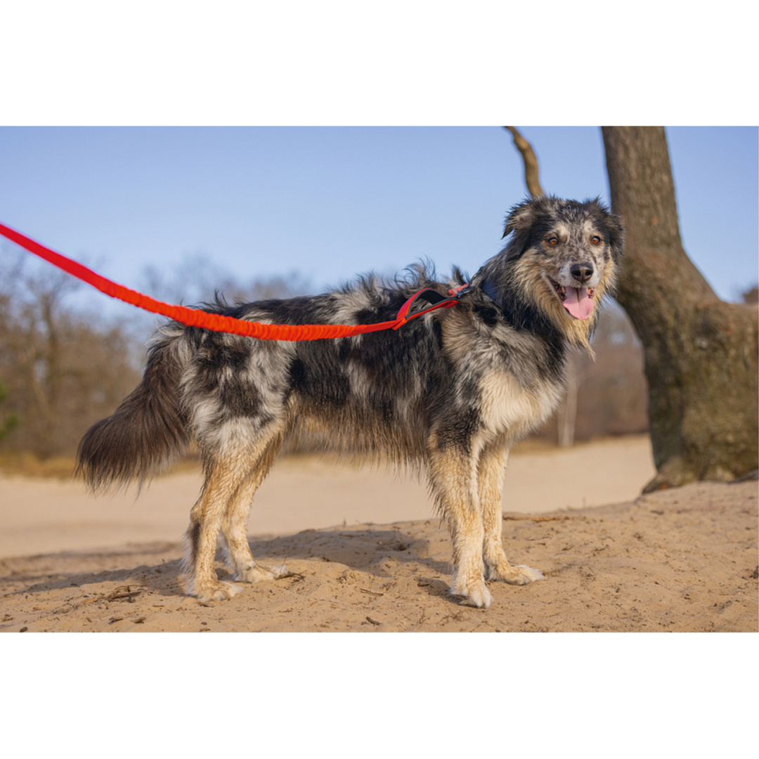 De Beeztees elastische looplijn Parinca Premium is de ideale hondenriem voor actieve wandelingen. Dankzij het elastische deel in de hondenriem worden plotselinge schokken bij trekken aan de riem opgevangen, wat zorgt voor minder belasting op je pols en een comfortabele ervaring voor je hond. Deze nylon riem heeft een binnenkant van sneldrogend neopreen, waardoor hij vuil weert en weerbestendig is. Ook is het handvat gevoerd met neopreen, zodat het comfortabel in de hand ligt en niet snijdt.