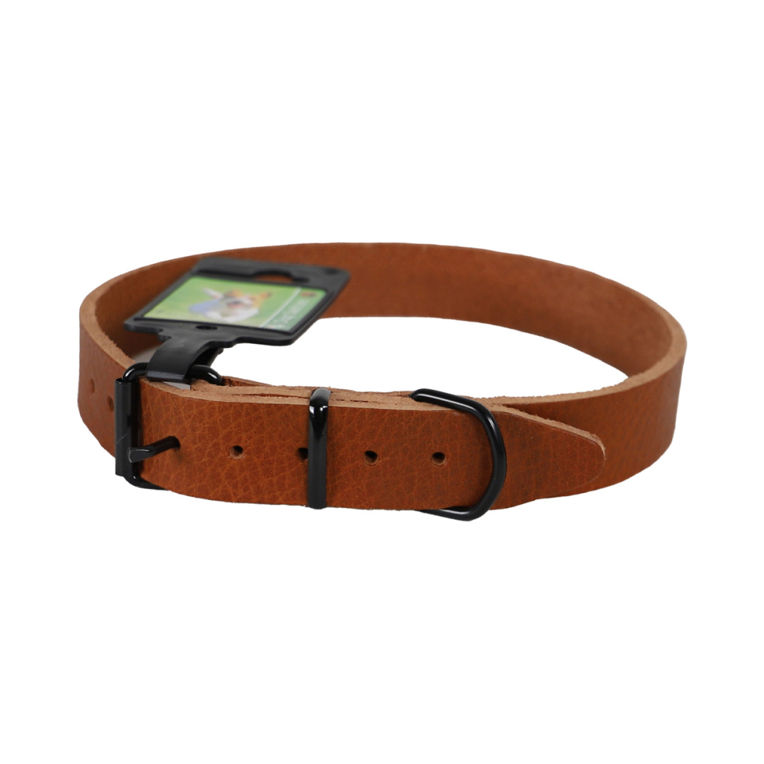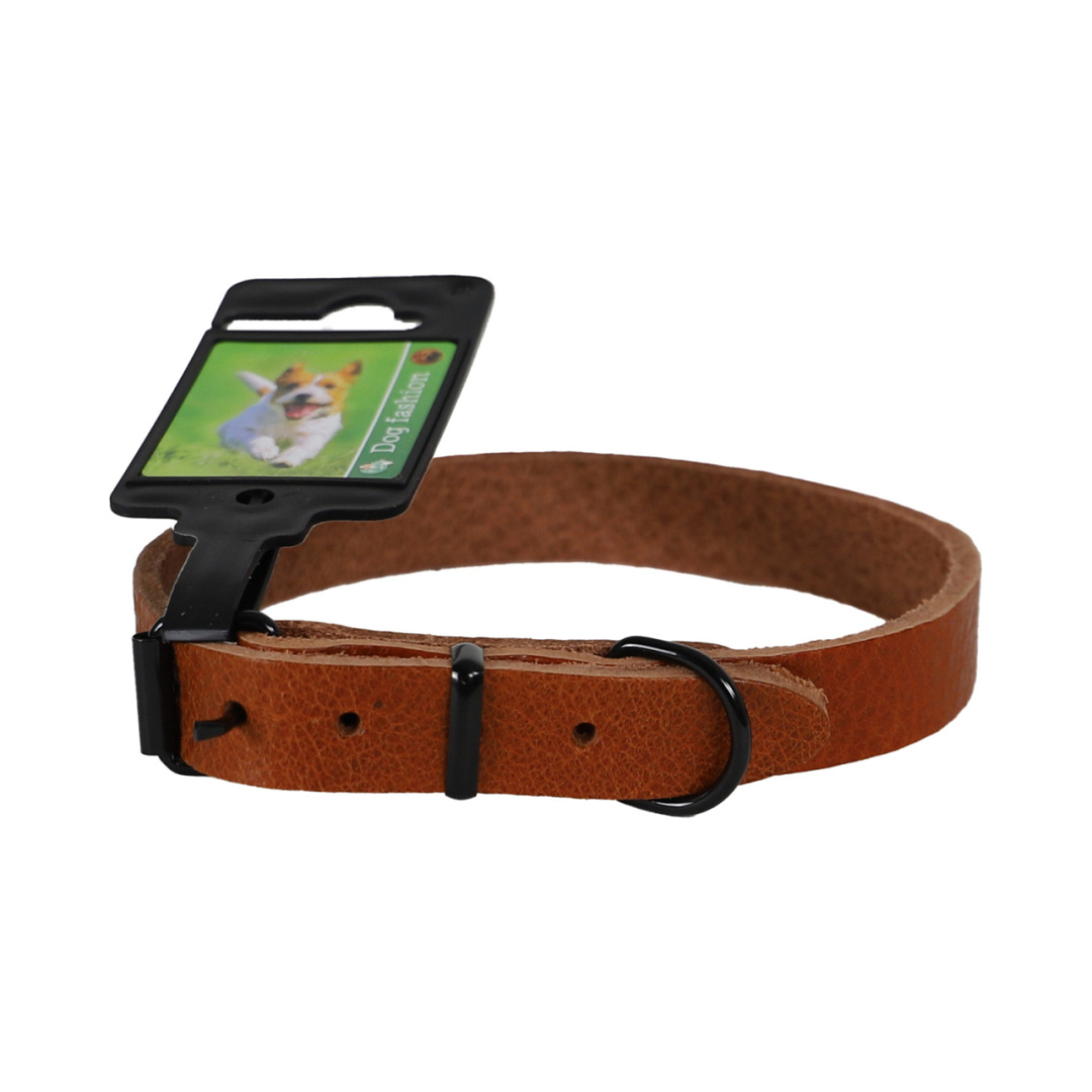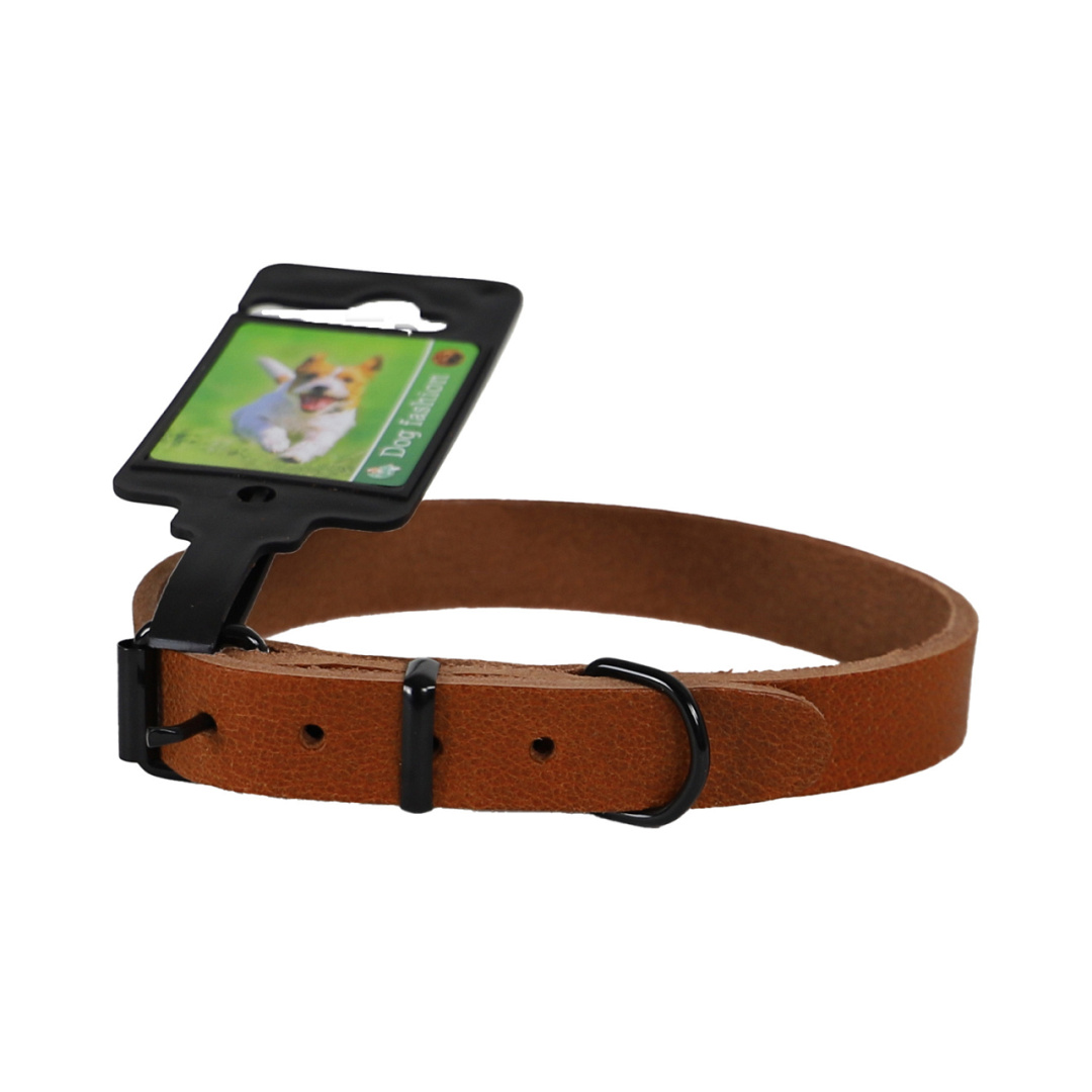 Luxe halsband van uitstekende kwaliteit leer met zwart metalen beslag.