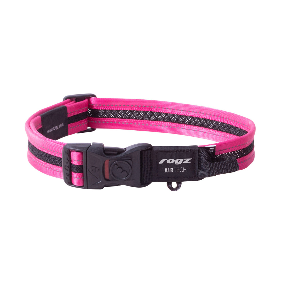 De Rogz AirTech halsband is licht van gewicht en heeft een zachte lus om de lijn aan te bevestigen. De speciaal ontwikkelde stof heeft gladde afgeronde randen en een ruitvormig gaas dat ultiem comfort biedt voor alle avonturiers. De reflecterende stiksels lichten op voor betere zichtbaarheid en veiligheid. De veilige en vertrouwde RogLocgesp kan worden vergrendeld om te voorkomen dat deze per ongeluk wordt geopend.