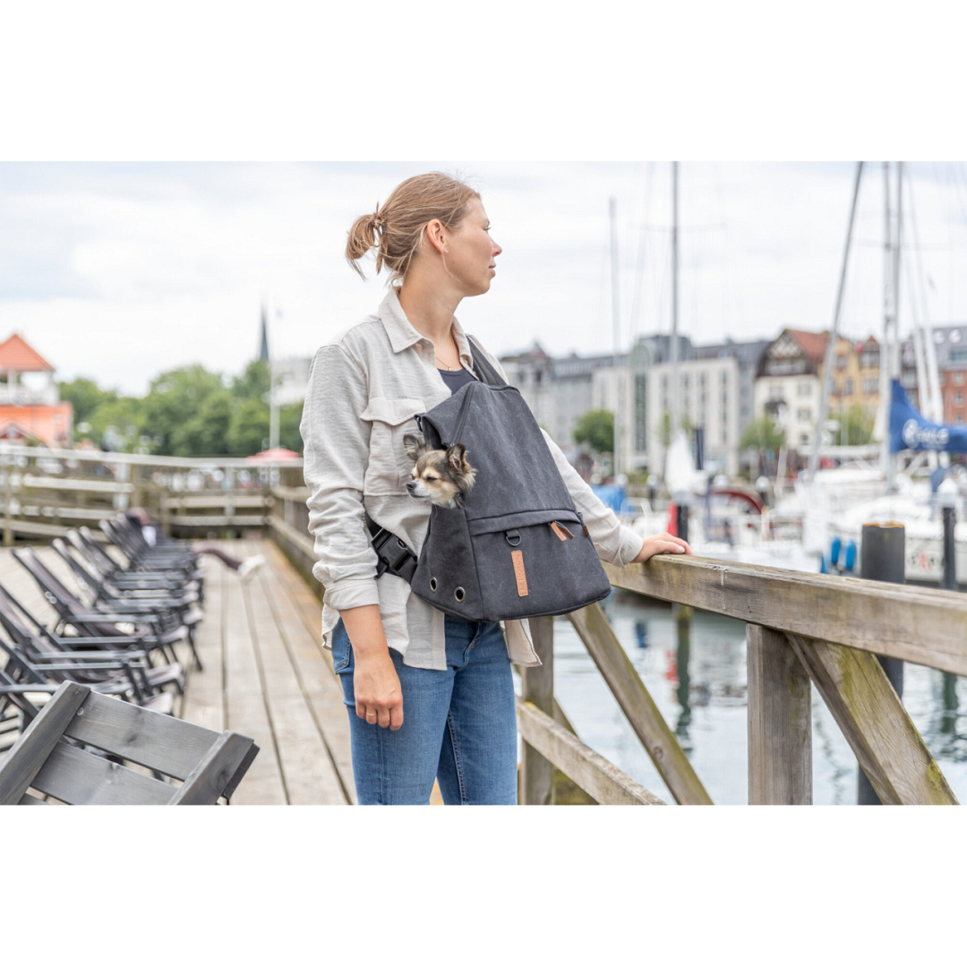 Rugtas om je kleine hond in te vervoeren. Kan ook op de buik gedragen worden.