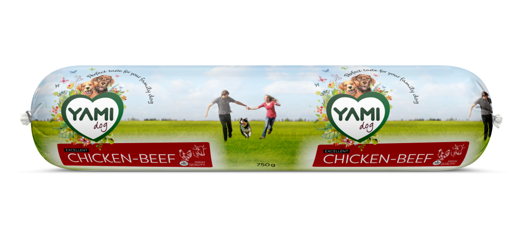 Yamipets hondenworst Kip/Rund is gemaakt van vers kippen- en rundvlees en bevat geen toegevoegde conserveringsmiddelen, geur-, kleur- en smaakstoffen. Deze volledige maaltijd is geschikt voor alle hondenrassen en leeftijden. De worsten worden zorgvuldig bereid uit de beste kwaliteit vers vlees, voor een goede opname van voedingsstoffen. Het is een gezond alternatief voor honden die diepvriesvleesvoeding gewend zijn. Doordat de worst houdbaar is buiten de koelkast is deze geschikt voor vakanties en dagjes weg.