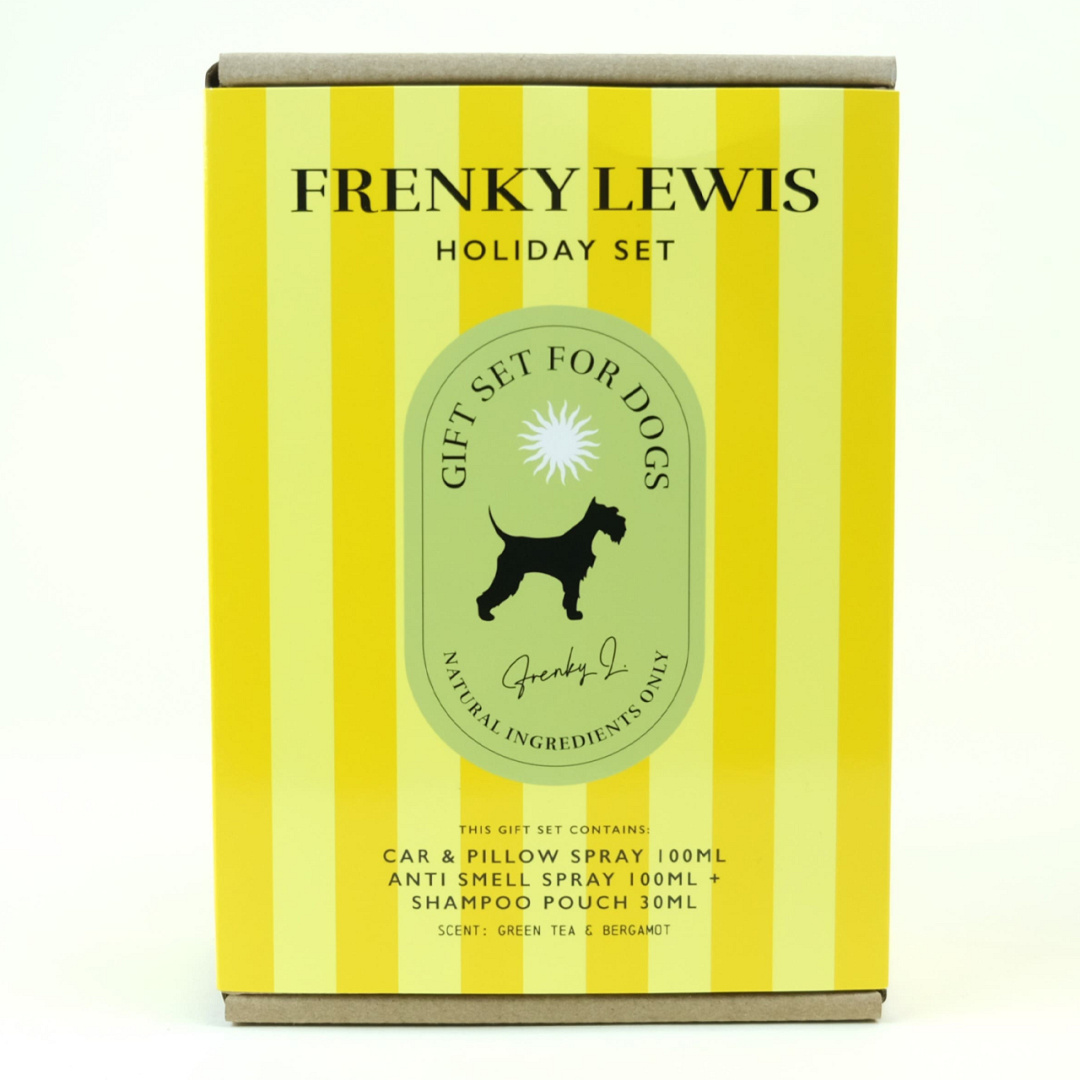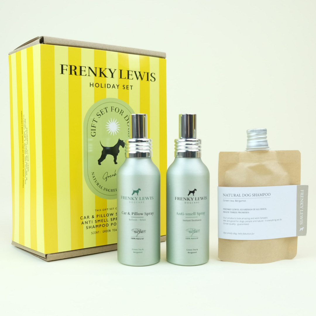 Maak van elke vakantie een plezierige ervaring met de Frenky Lewis Holiday set Noble Woods. Houd de auto fris, je hond schoon en heerlijk geurend, zodat iedereen kan genieten van knuffels en een stinkvrije omgeving.