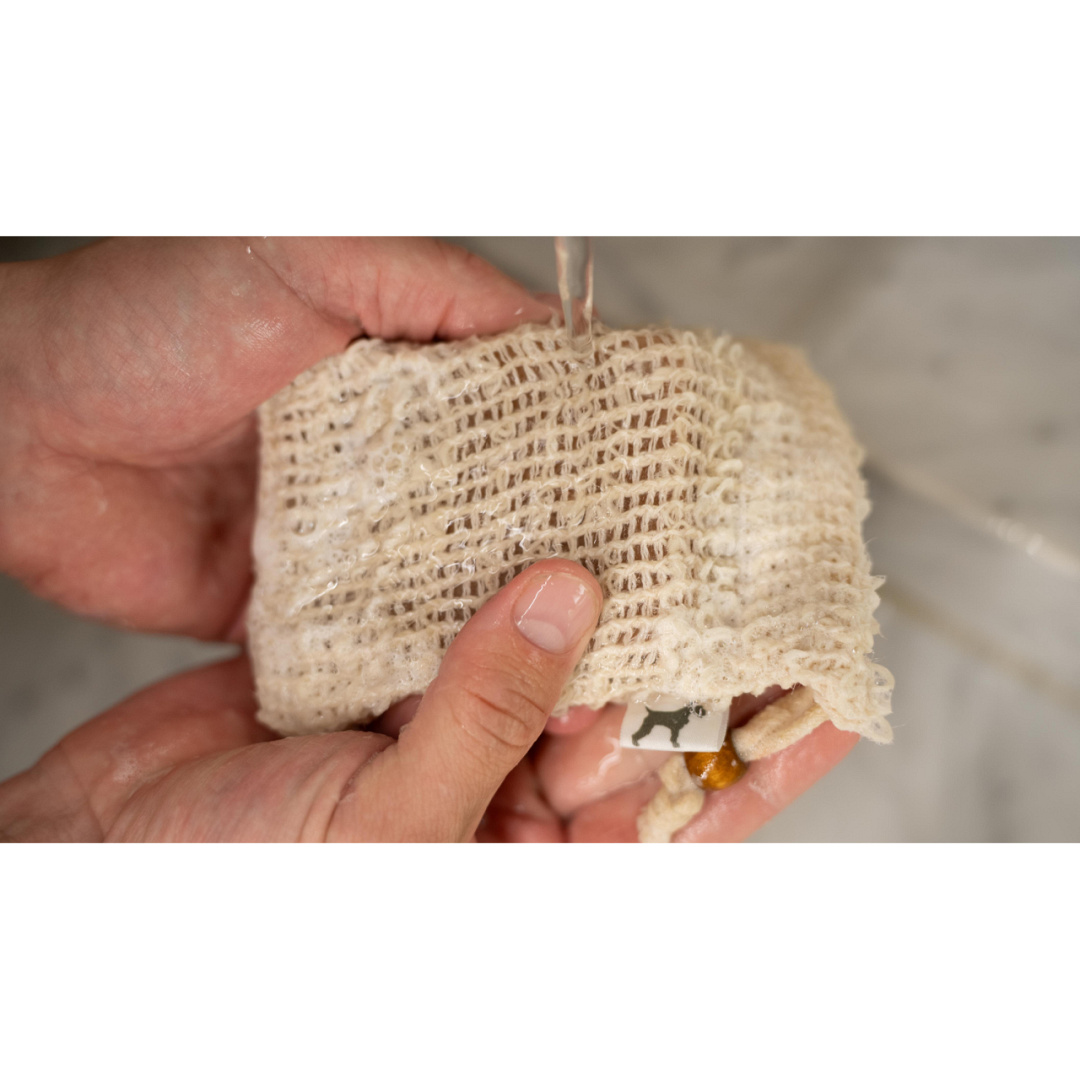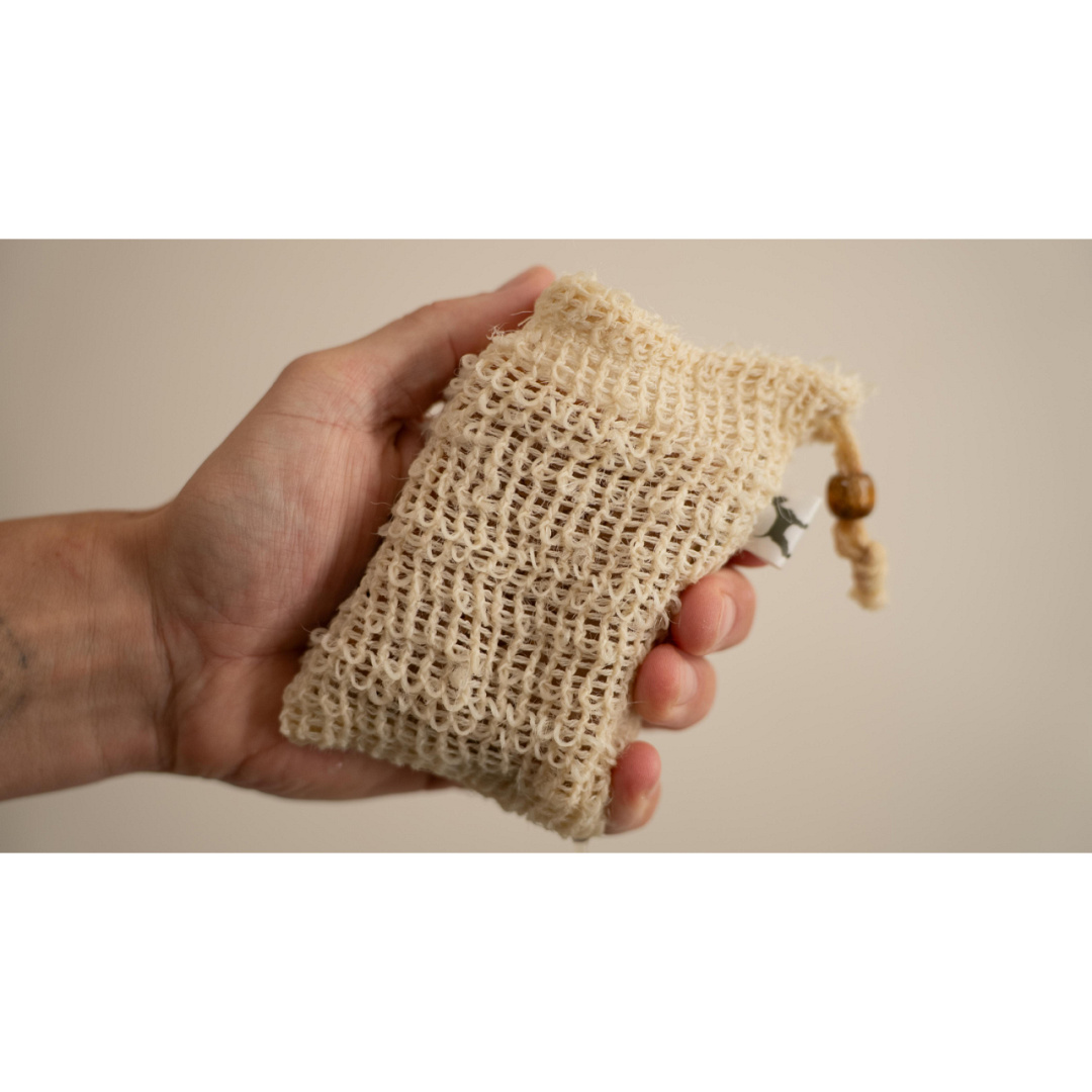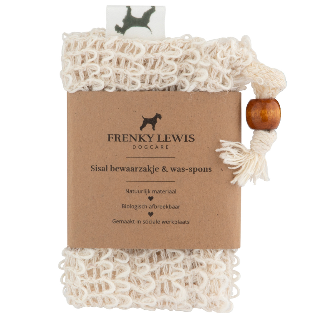 Was- en bewaarzakje van sisal voor de Frenky Lewis shampoo bar. Ook te gebruiken als wasspons.