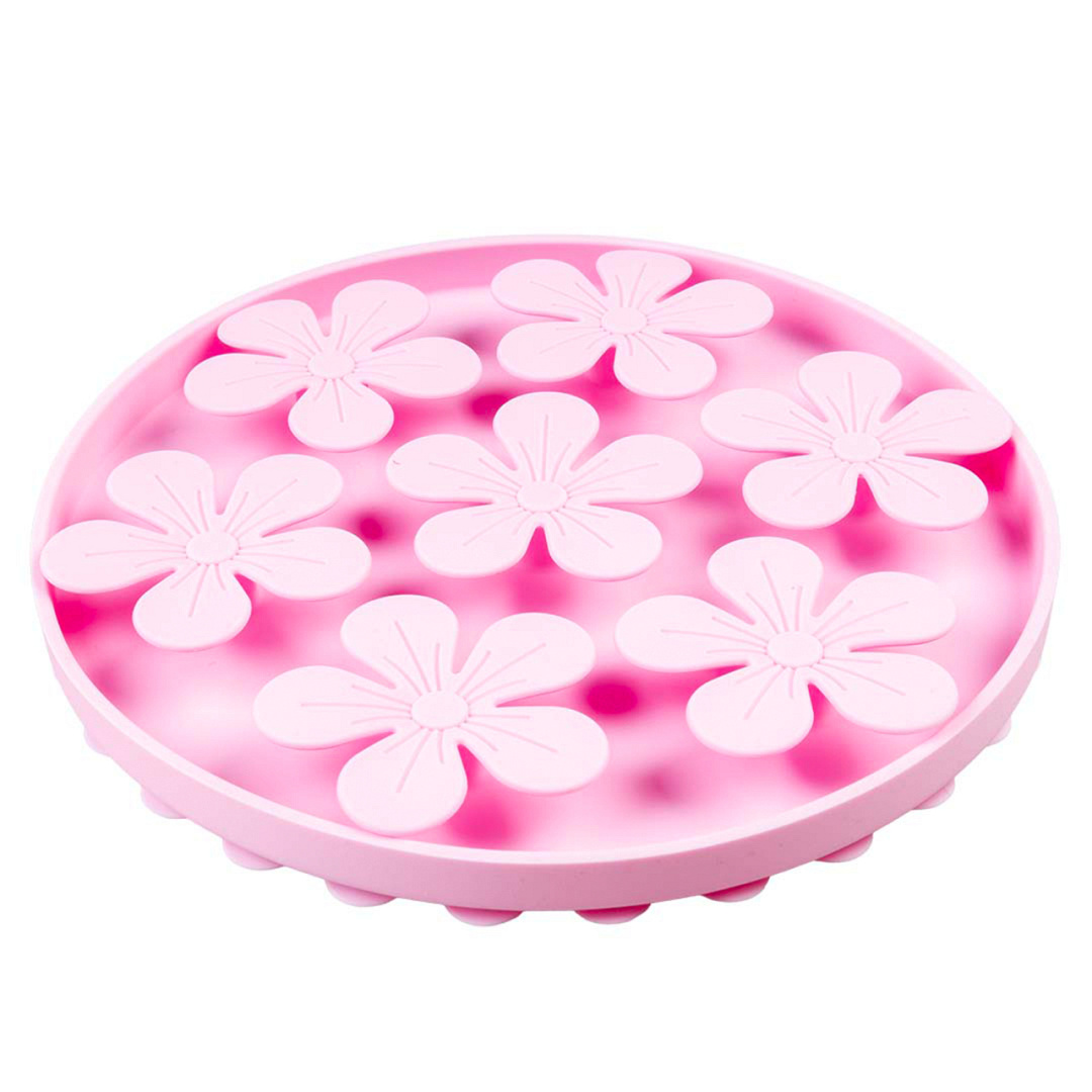 De Duvo+ snuffelmat Camellia gaat schrokken en verveling tegen bij honden en katten. Smeer een vloeibare snack zoals paté of natvoer op de mat of leg er korreltjes in. Jouw hond of kat zal hier lang plezier aan hebben om deze uit te likken en bovendien heeft de mat ook een kalmerend effect. De grote bloemfiguren maken de mat extra uitdagend! De zuignappen onderaan zorgen ervoor dat het stevig op de vloer blijft plakken.