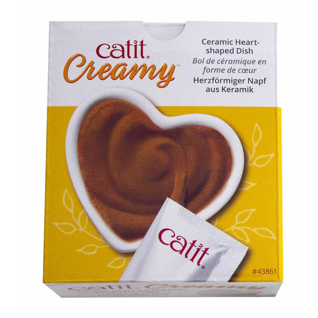 Doe Catit Creamy op dit bijzondere hartvormige schoteltje en hou het vast bij het speciale handvat terwijl je kat de crème zorgvuldig oplikt. Op deze manier voelt je kat je nabijheid en werk je aan een hechtere band met je huisdier.