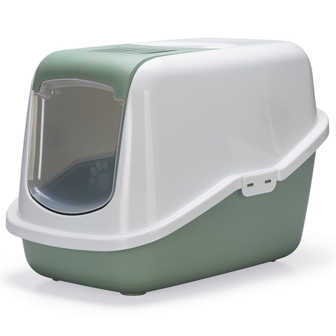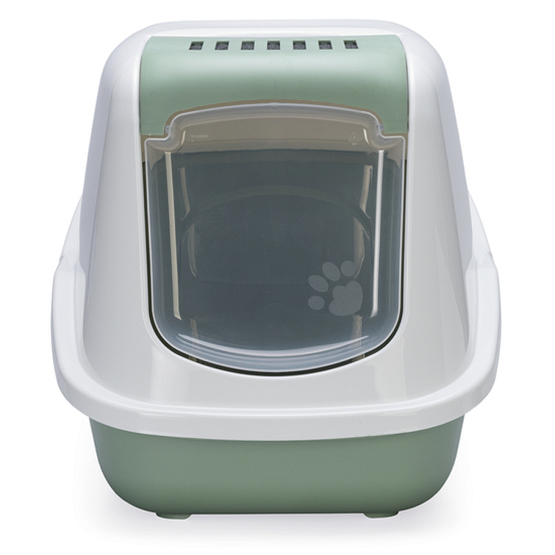 De Beeztees kattenbak Nestor is een mooi vormgegeven kattenbak. Bij deze gesloten kattenbak is het niet nodig om de gehele bovenkap te verwijderen als je de bak wilt schoonmaken. Je kunt namelijk het deurtje en het binnenste gedeelte van de bovenzijde in een handomdraai naar boven klappen om vervolgens de kattenbak schoon te maken. De kattenbak bevat een filter om nare geuren te verminderen. De hoge rand aan de achterkant voorkomt dat urine in de randen loopt, ideaal voor katten die staand plassen! Als jouw kat nog moet wennen aan een gesloten kattenbak, kun je de bovenkap volledig verwijderen. Handig ook bij het volledig vervangen van de kattenbakvulling. De transparante deur zorgt ervoor dat je kat de omgeving in de gaten kan houden tijdens zijn of haar behoefte.