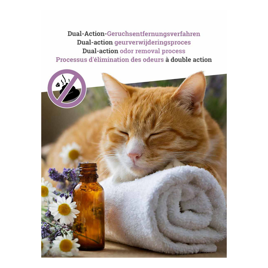Superieure, snel absorberende kattenbakvulling die zorgt voor een schone, geurvrije omgeving.